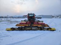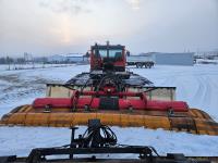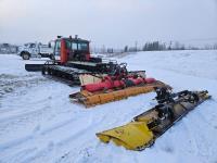 6 cylinder Mercedes Benz diesel engine, hydrostatic transmission, cab, heater, radio. 166 inch 7 way blade, quick attach, 56 inch wide tracks, 2 inch steel cleats, foam filled tires, operator manuals, (2) rear auxiliary hydraulics, c/w Kassbohrer 176 inch multiflex snow conditioner tiller, Kassbohrer 248 inch grooming blade w/hydraulic fold in ends