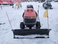 Briggs & Stratton 20 HP gas engine, hydrostatic transmission, 46 inch front mount blade, rear tire chains, rear wheel weights, no mower deck