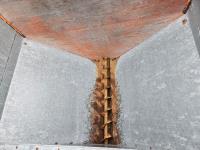 Set up to handle pellets, cubes, or grain. Spout will lower to unload into bunks or hay windrows