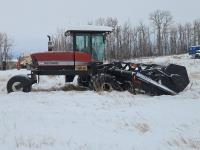 Seller says there is no rush to pickup swather, it can winter there or wait for a warm spell to pick it up.