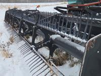 Macdon 972 triple delivery rigid draper header, pickup reel, variable speed reel, Cummins 4 cylinder diesel engine, A/C, radio, has duals on one side, 16.5LX16.1 front tires, 21.5-16.1 rear tires