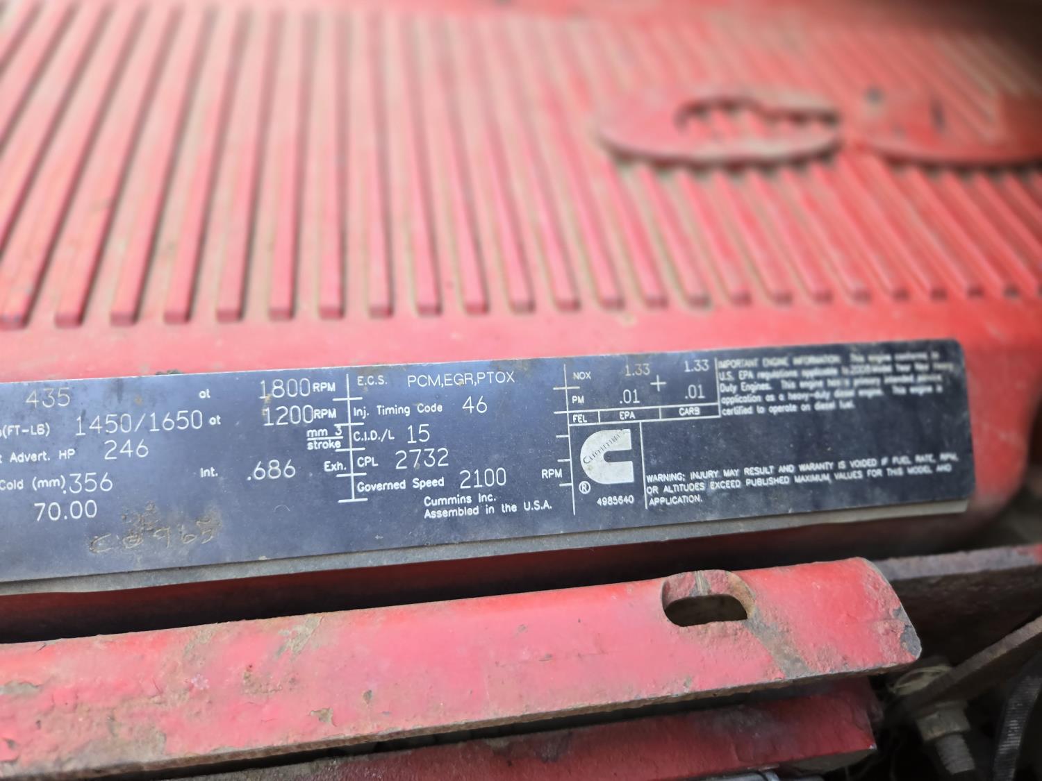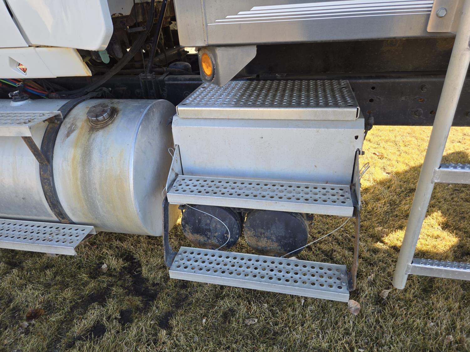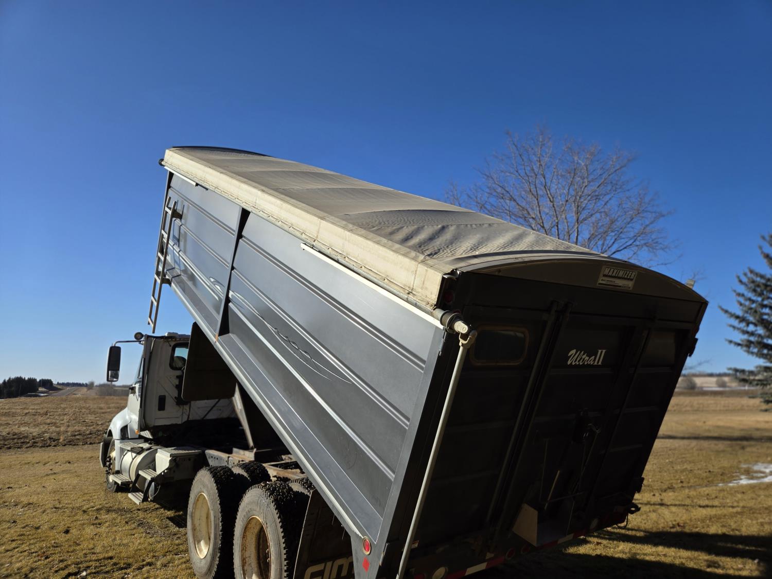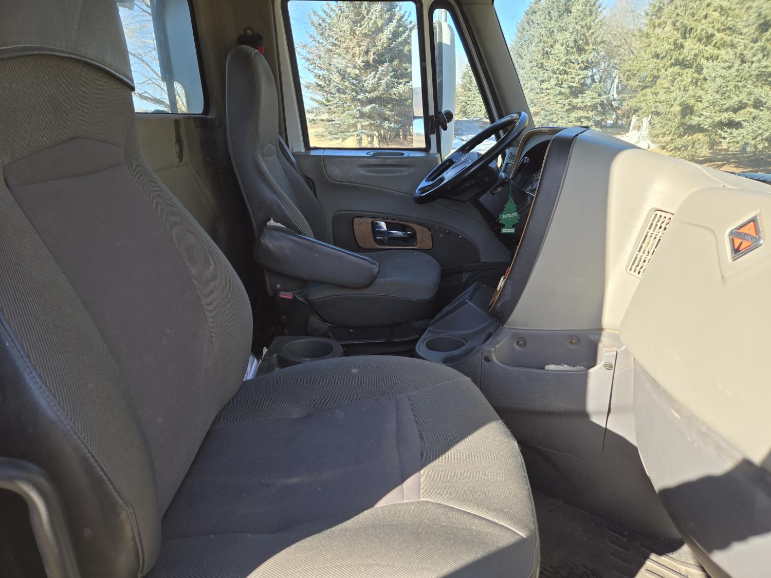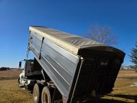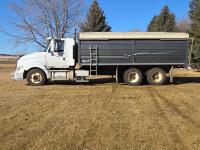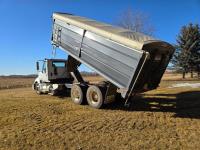 Cummins 435 HP engine, 10 speed auto shift transmission, A/C, air ride driver seat, P/W, P/L, hoist, Ultra II 20' steel box, rear hoist and grain gate control, air ride suspension, 12,000 lb front axle, 20,000 lb rear axles, 3 way diff locks, 240 inch WB, Michaels roll tarp, Kramble rear remote gate opener, 11R22.5 tires