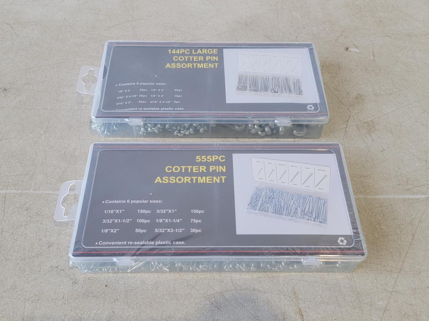 1596 144 Piece Cotter Pin Assortment and 555 Piece Cotter Pin Assortment (Unused)