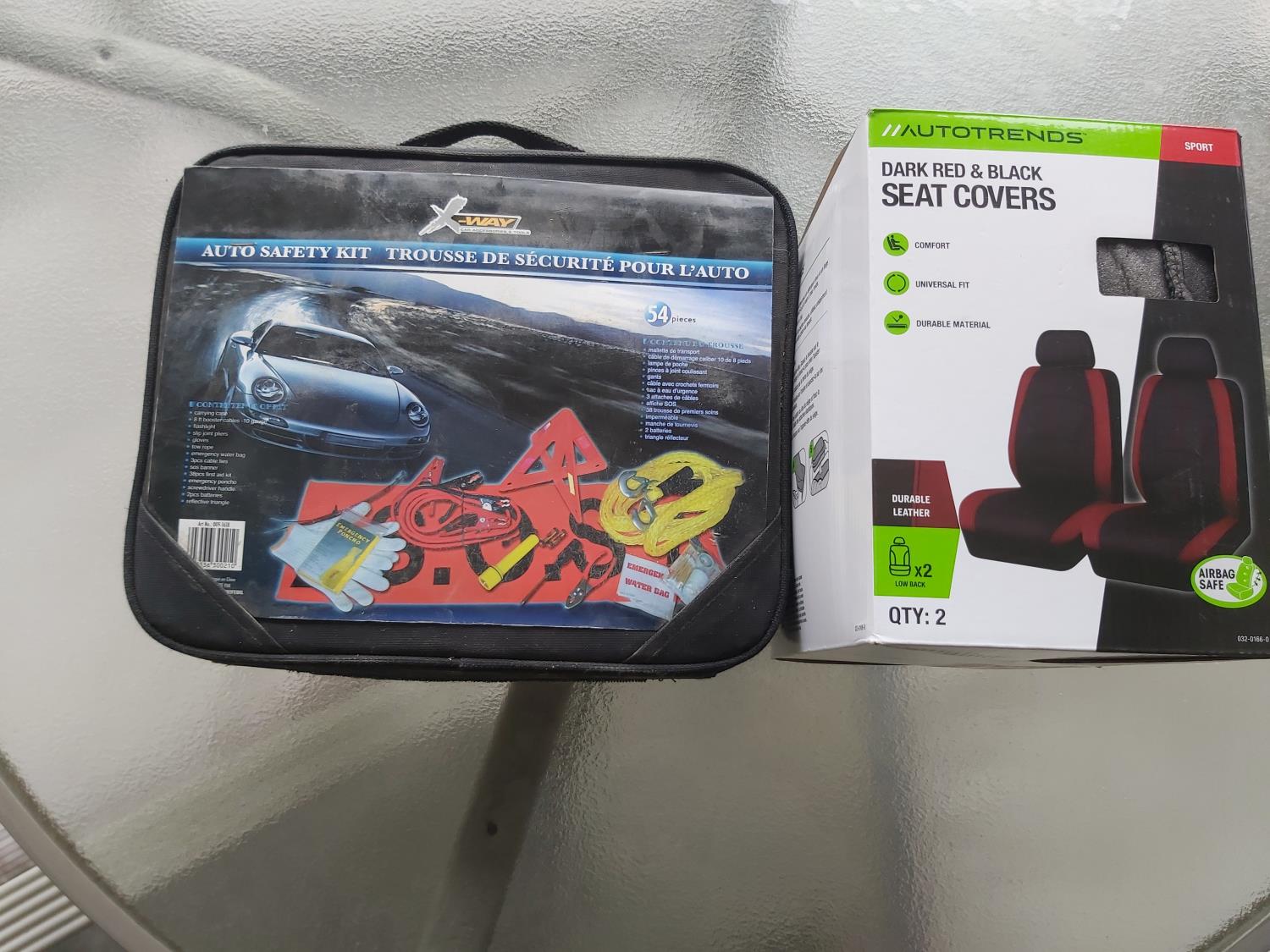 2159 (2) Car Seat Covers & Auto Safety Kit (Unused)