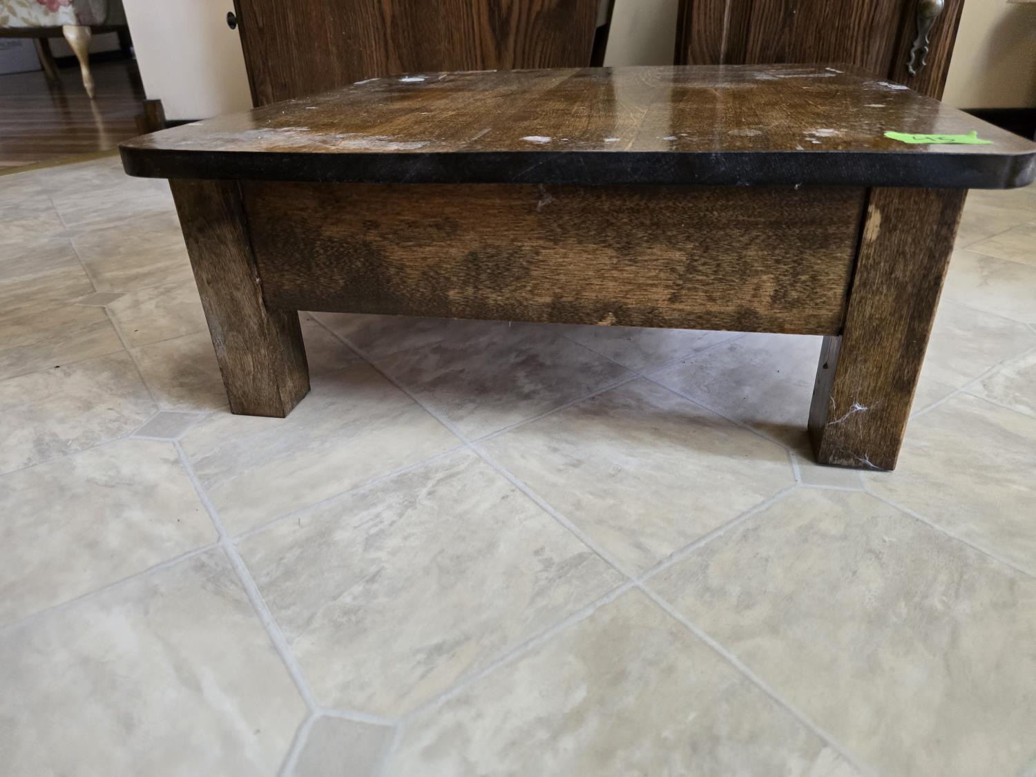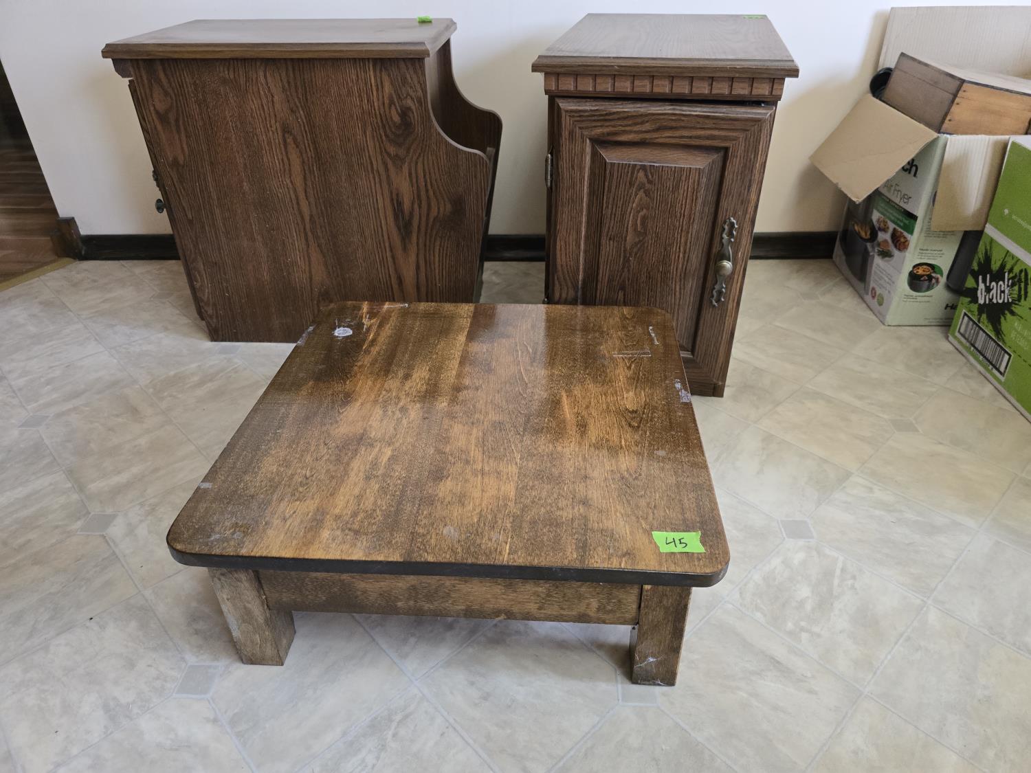 end tables 13" x 19" x20.5" , foot stool 20" x 20" x 7.5"