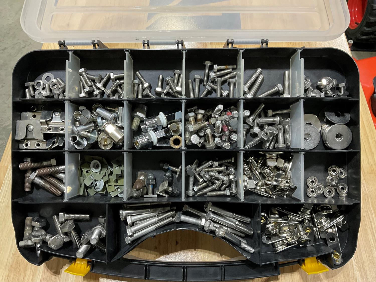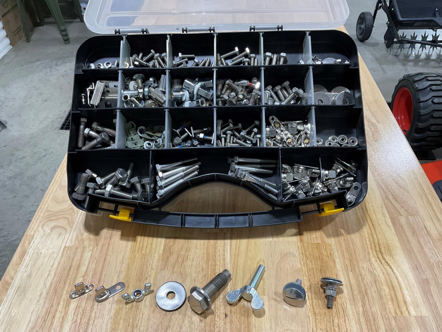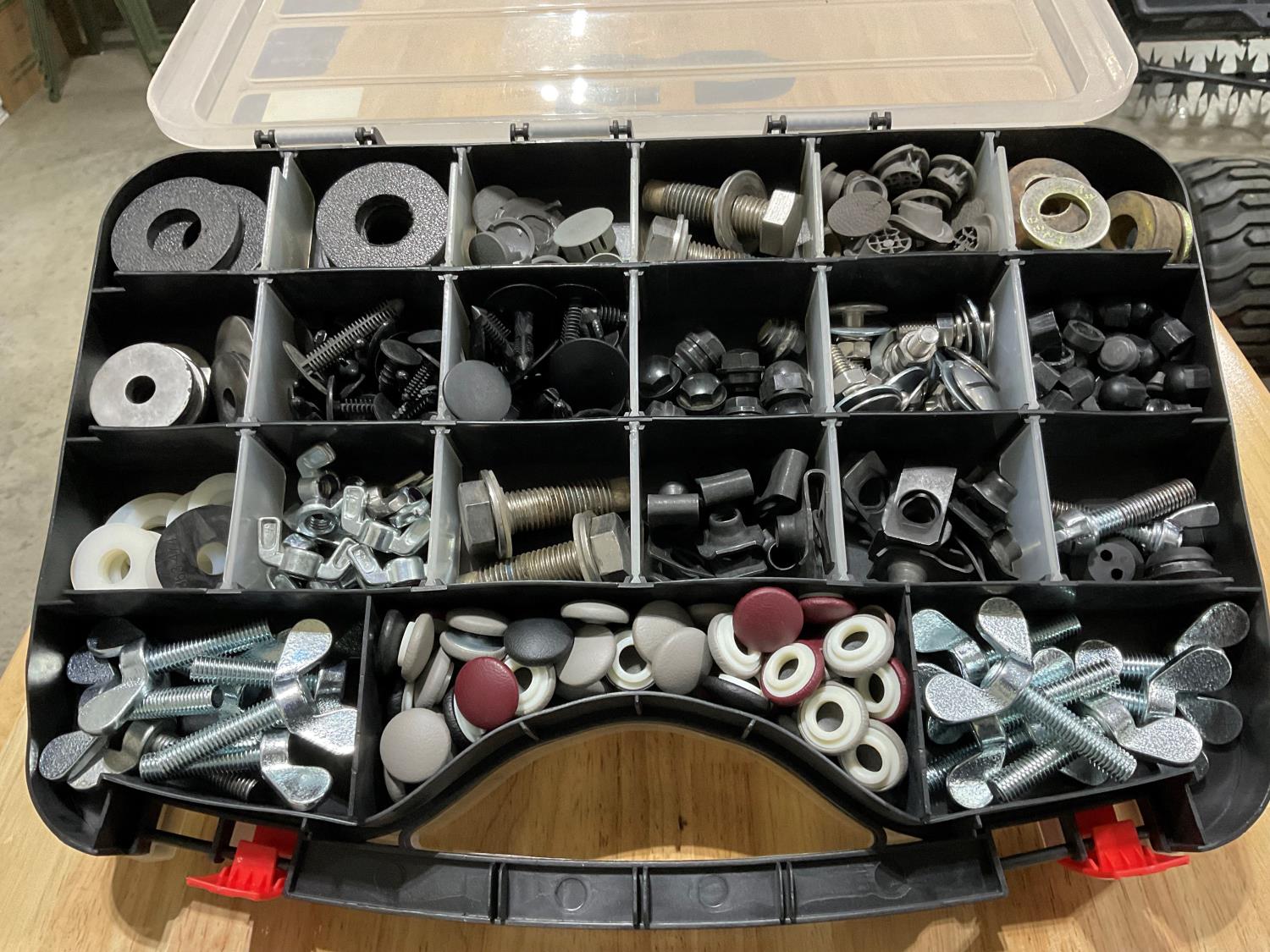 (7) rear hood mud flap bolts, (14) KW battery box T bolts, other hardware