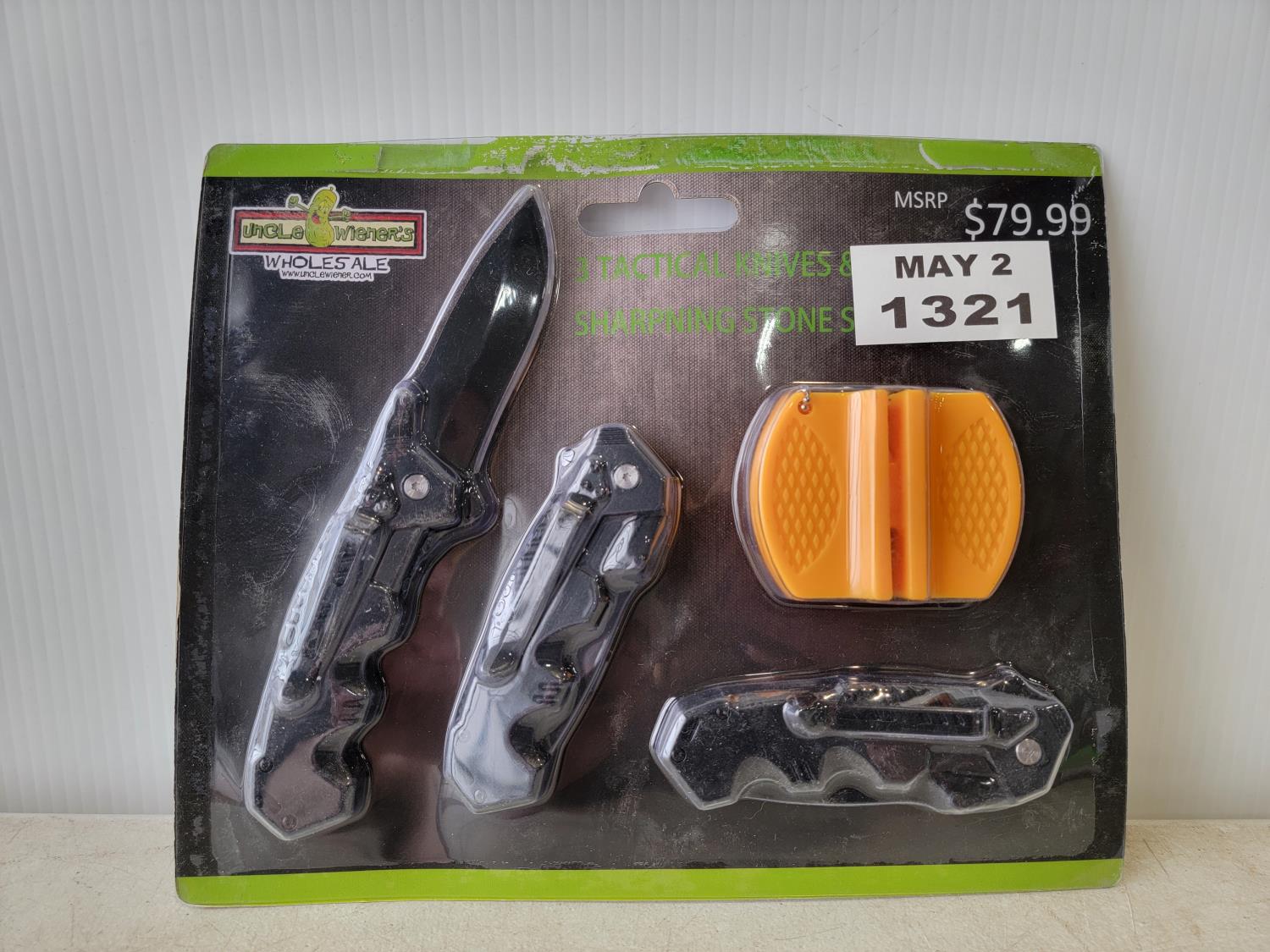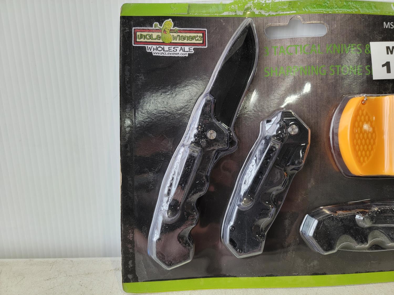 1752 3 Tactical Knives and Sharpening Stone Set (Unused)