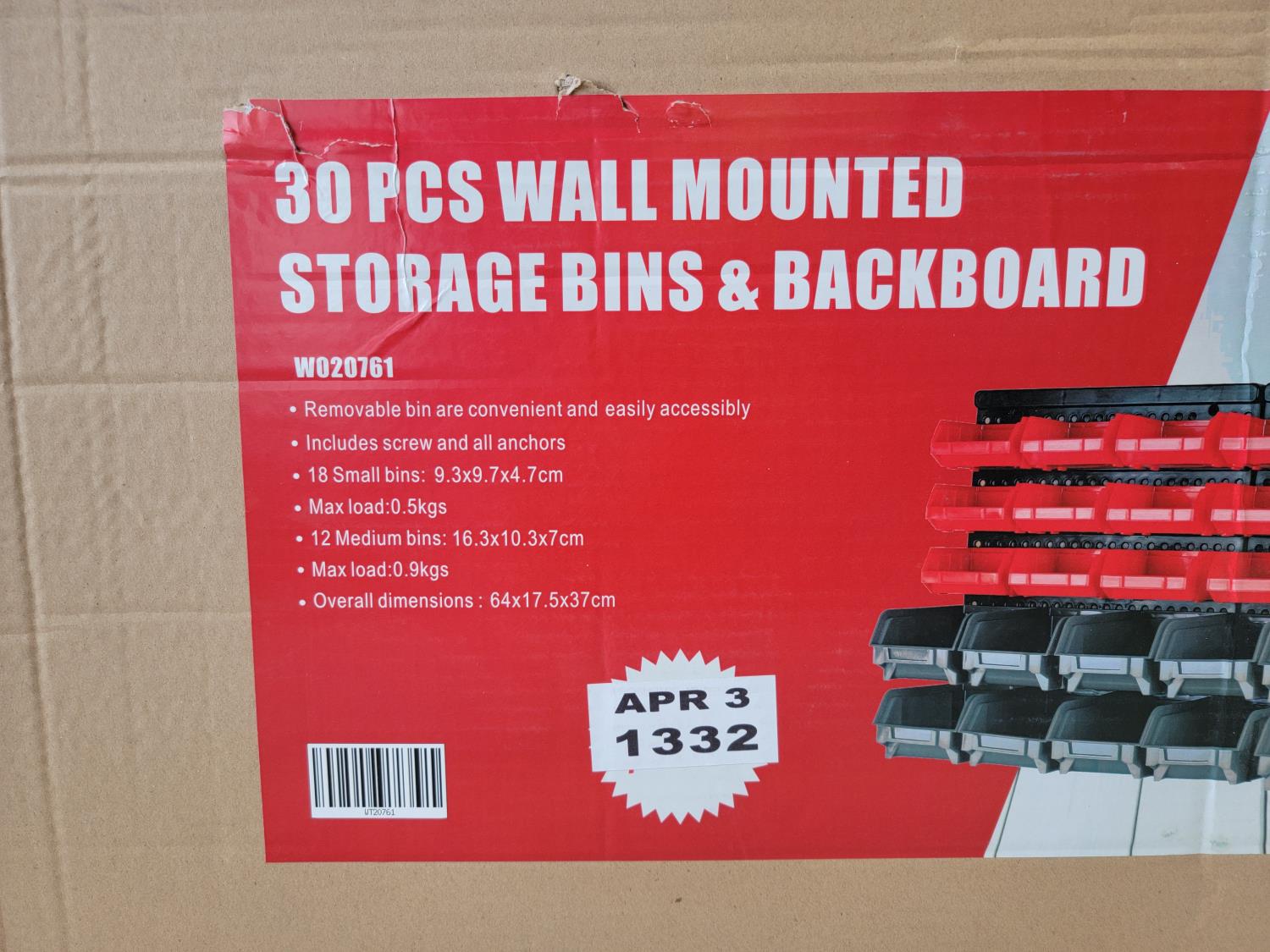 1771 30 Piece Wall Mounted Storage Bins with Backboard (Unused)