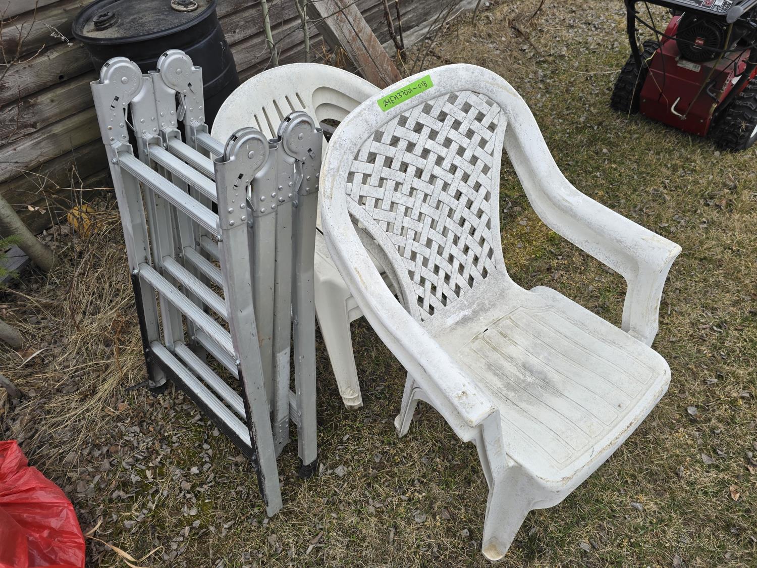 2169 (5) Poly Chairs & 10 Ft Aluminum Ladder