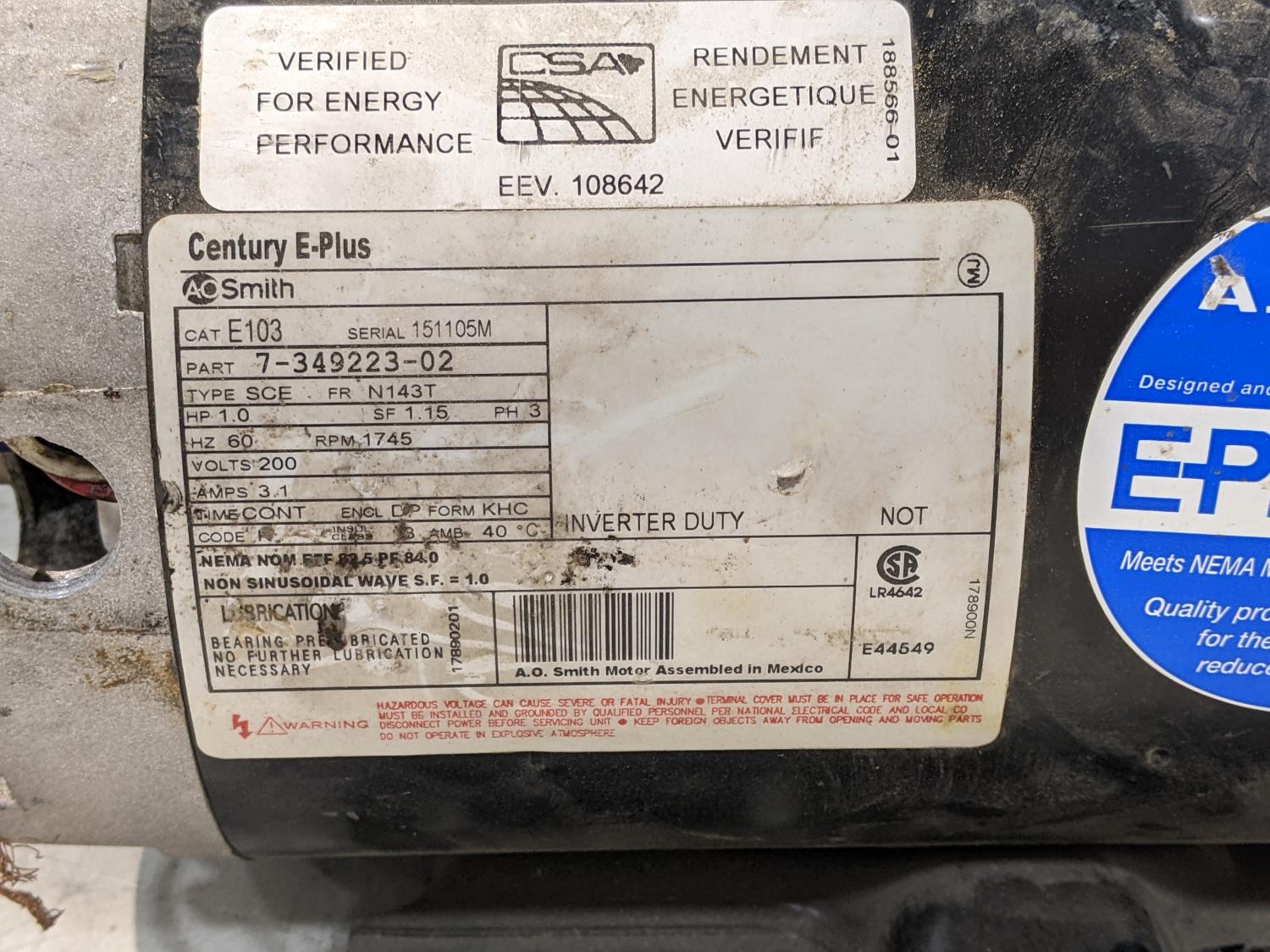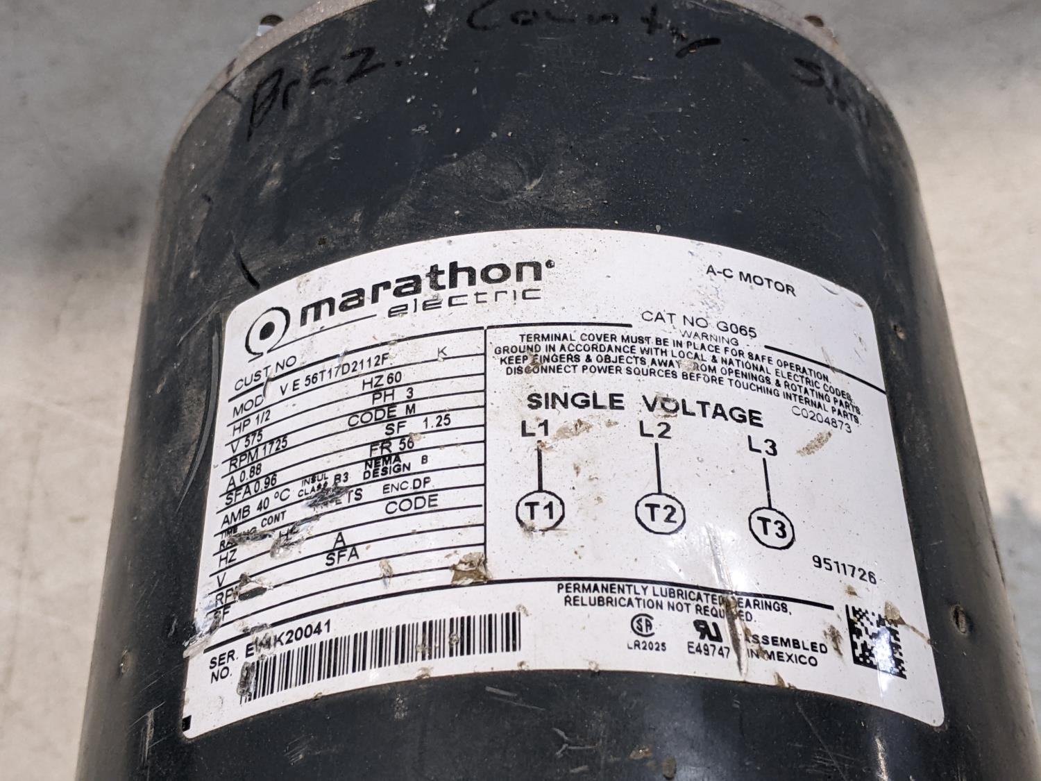 AO Smith 3ph, Baldor 3ph, General Electric 3ph, Marathon Electric 3ph, General Electric 3ph,