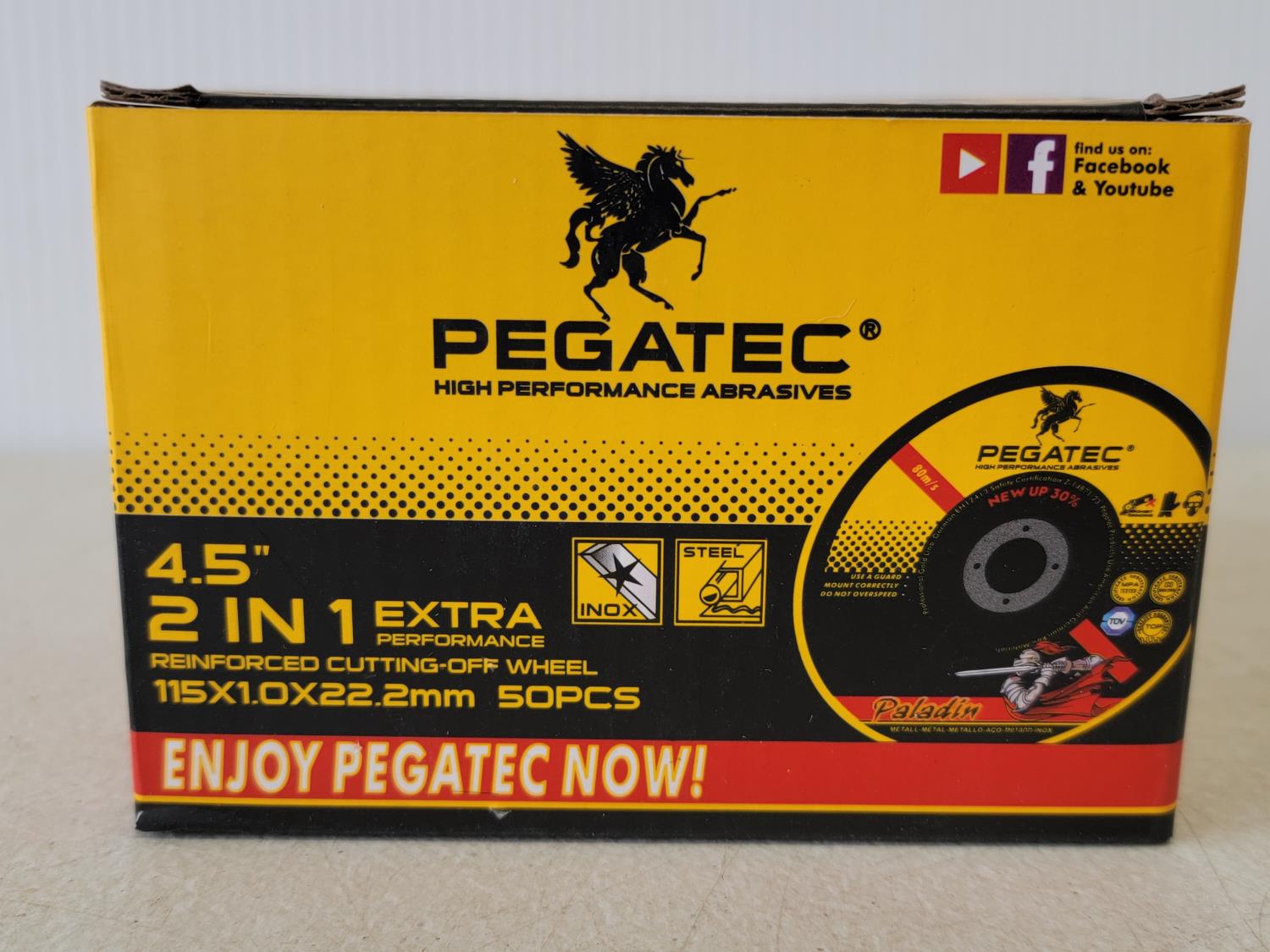 1565 50 Piece Pegatec 4.5 Inch Cut-Off Wheels (Unused)