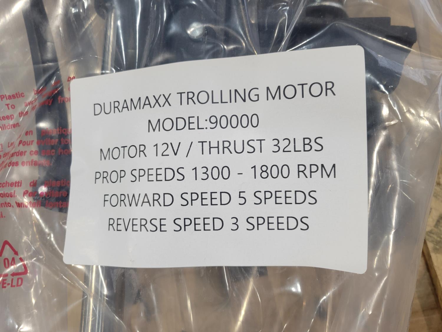 1305 Duramaxx Drifter I 90000 12V Trolling Motor (Unused) and (2) Paddles