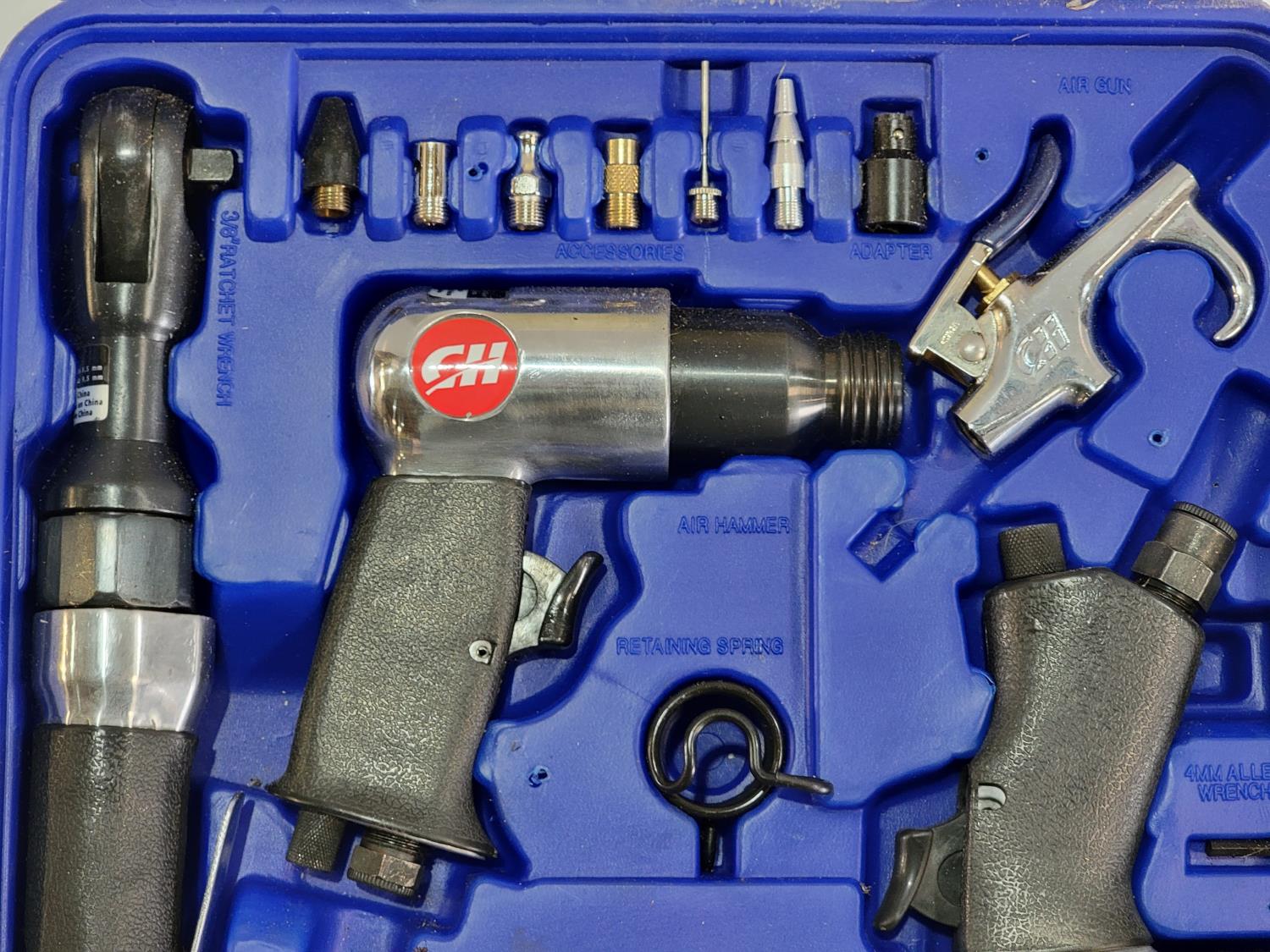 short barrel air hammer, 1/2 inch impacts wrench, 3/8 inch air ratchet, attachments