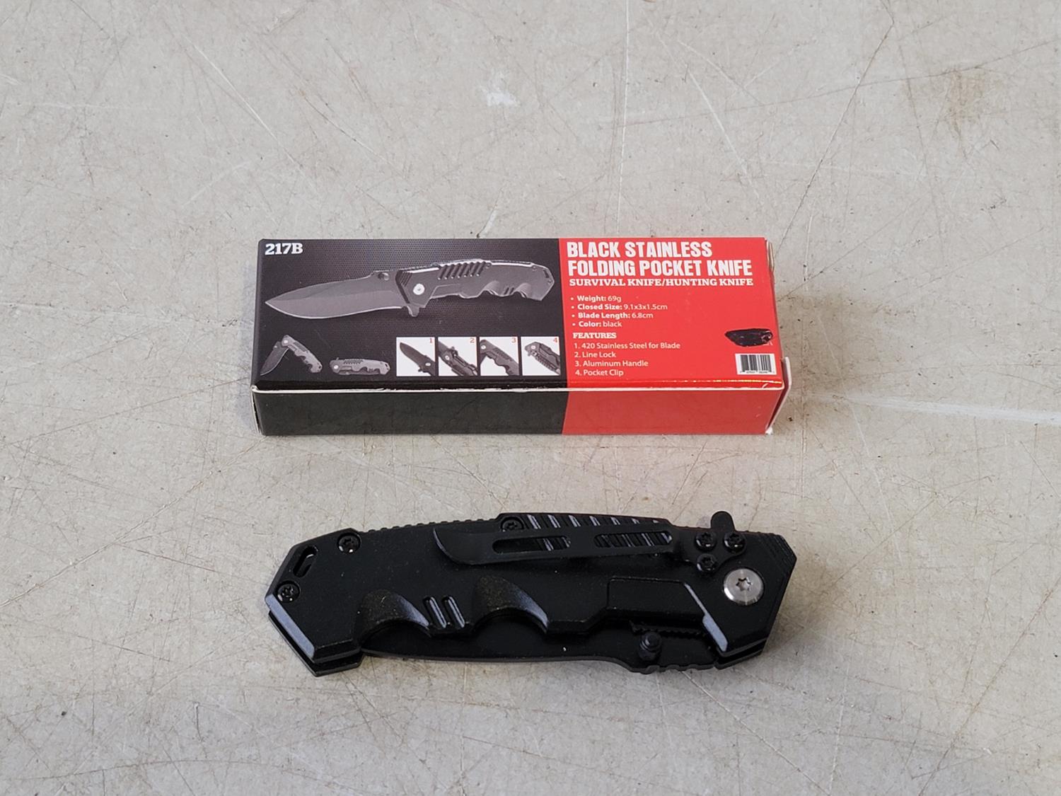 1755 Black Stainless Folding Pocket Knife (Unused)