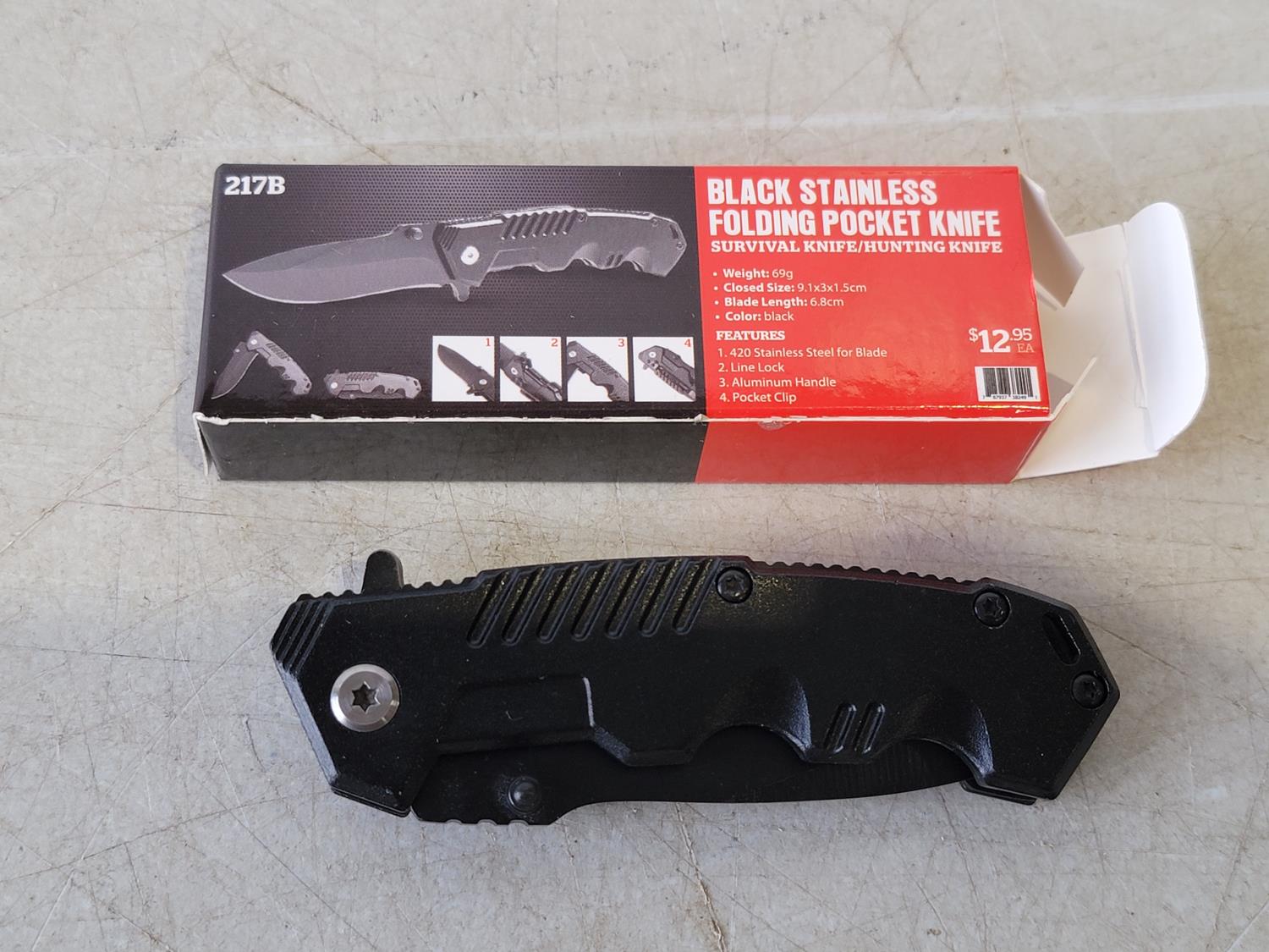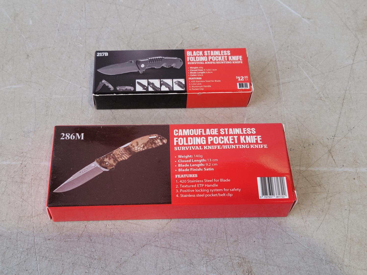 1598 Camouflage Stainless Folding Pocket Knife and Black Stainless Folding Pocket Knife (Unused)