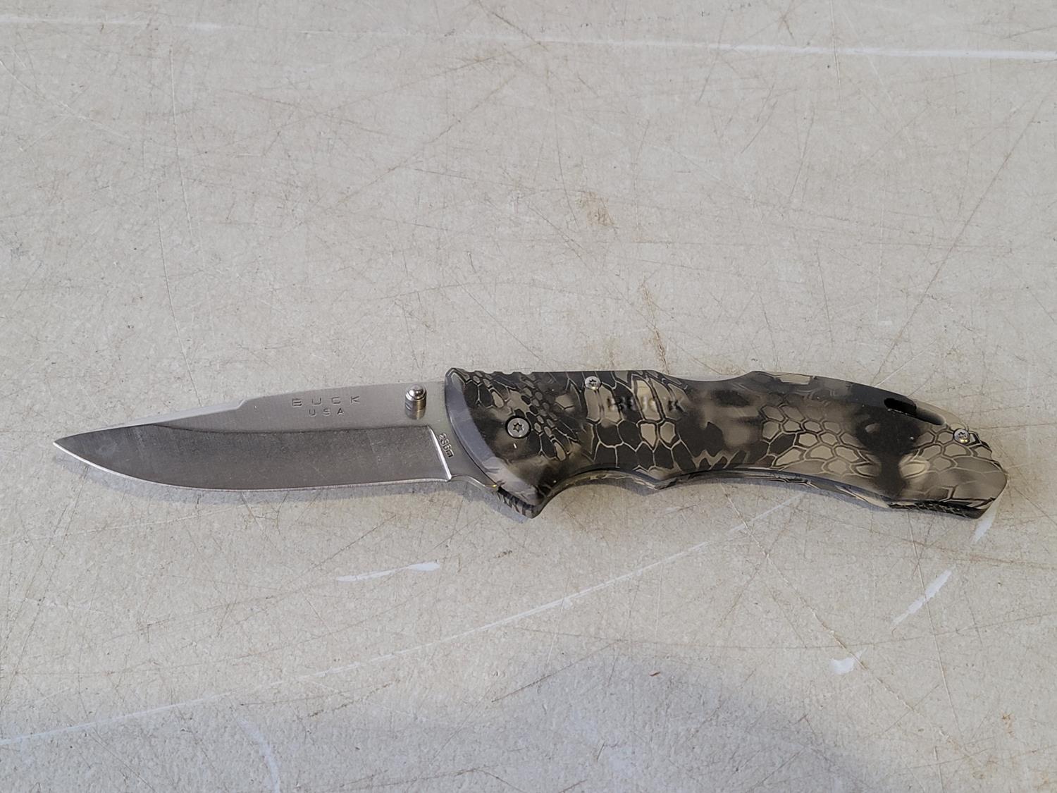 1599 Camouflage Stainless Folding Pocket Knife and Black Stainless Folding Pocket Knife (Unused)