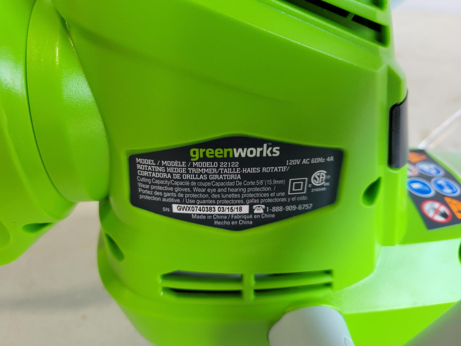 1339 Greenworks 22 Inch Rotating Hedge Trimmer (Unused)