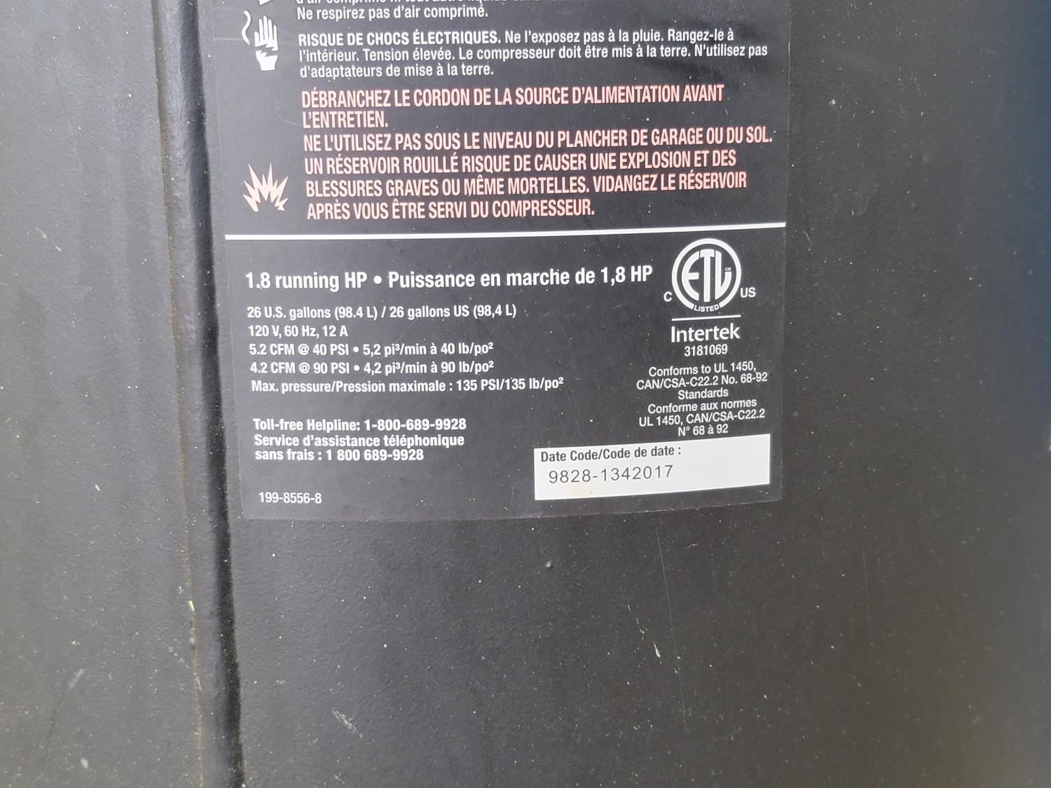 1.8 HP, 135 PSI