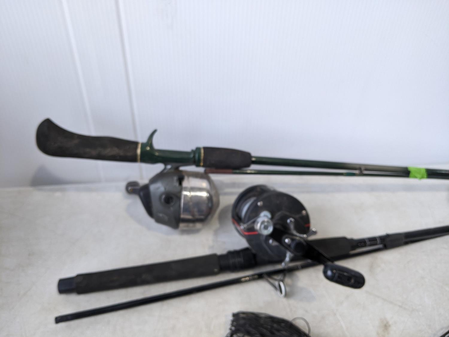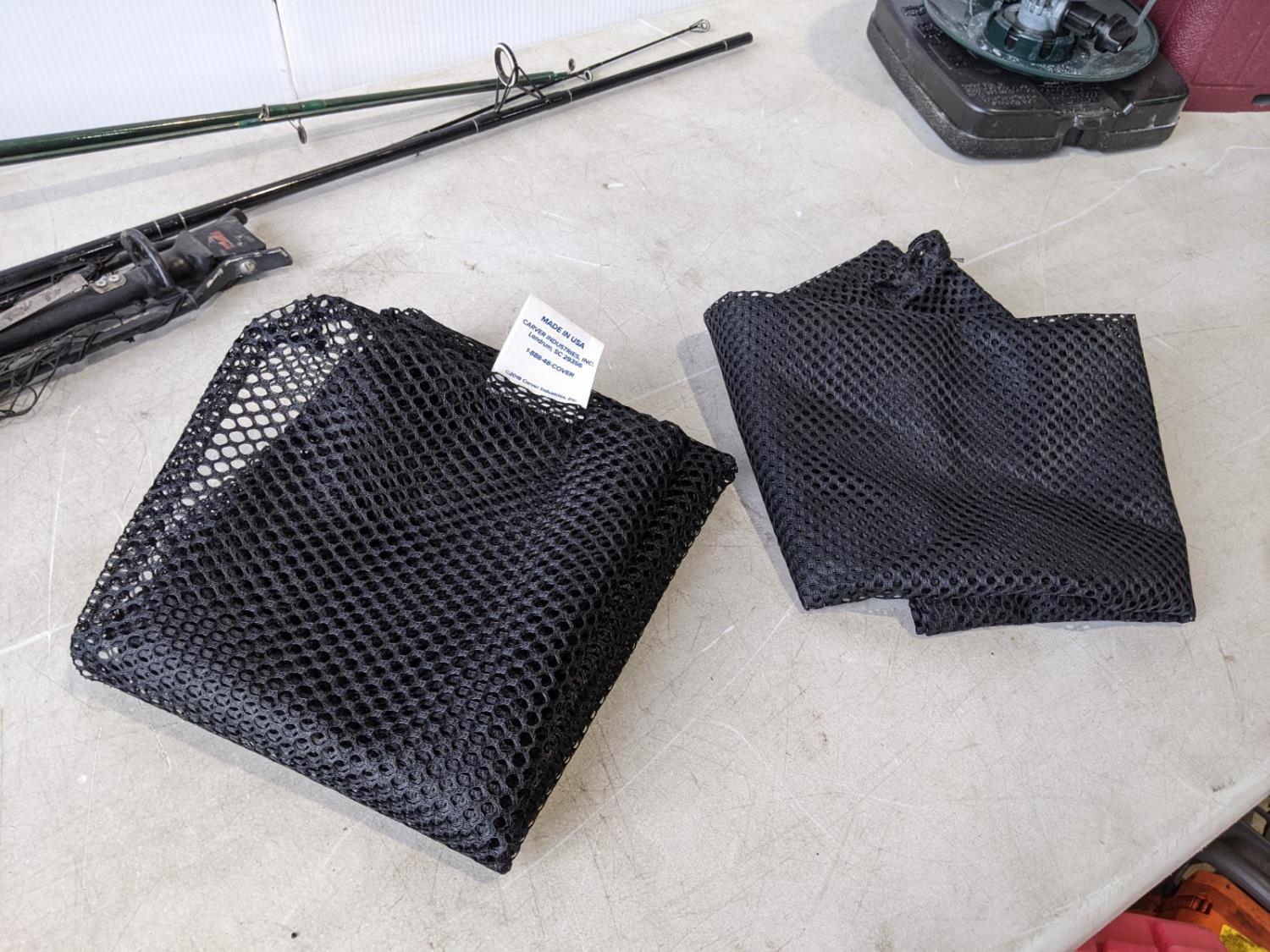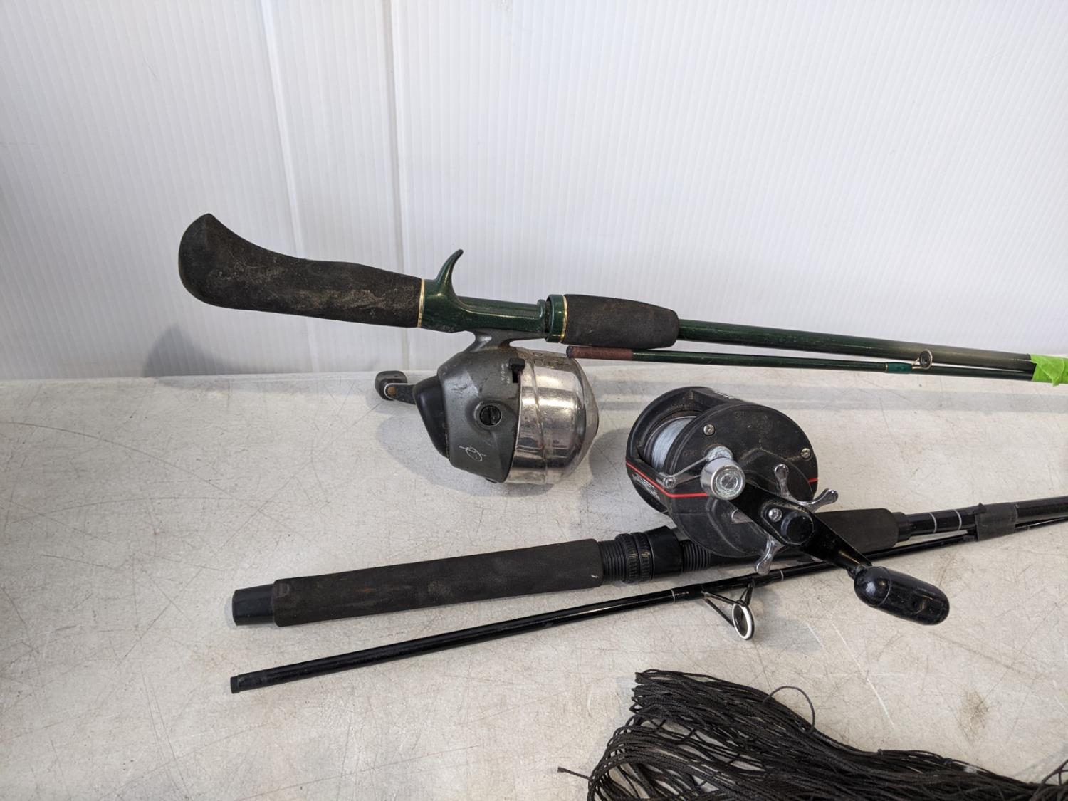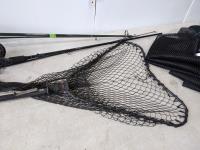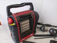 Mr. Heater portable buddy propane heater 9000btu, (2) fishing rods, foldable Rapala net (has holes), Coleman propane lantern, (2) large net bags