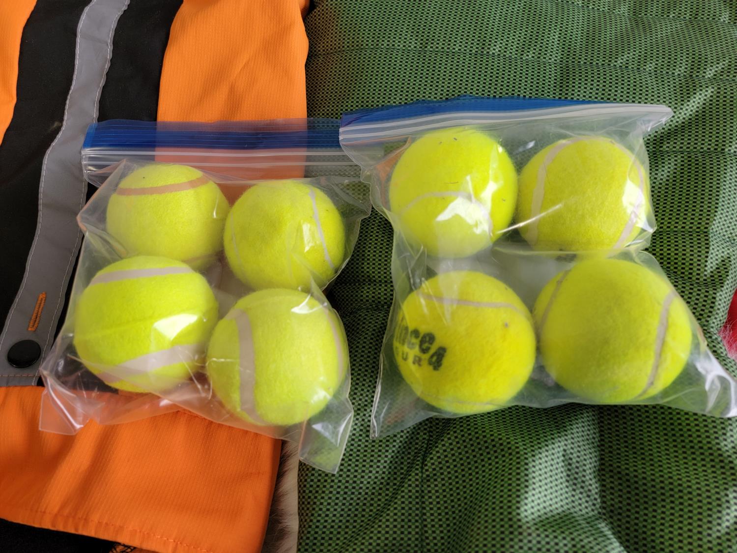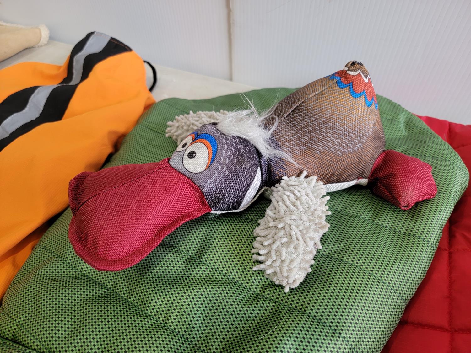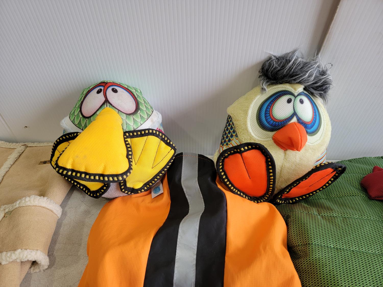 Toys, leashes, coats, bowl