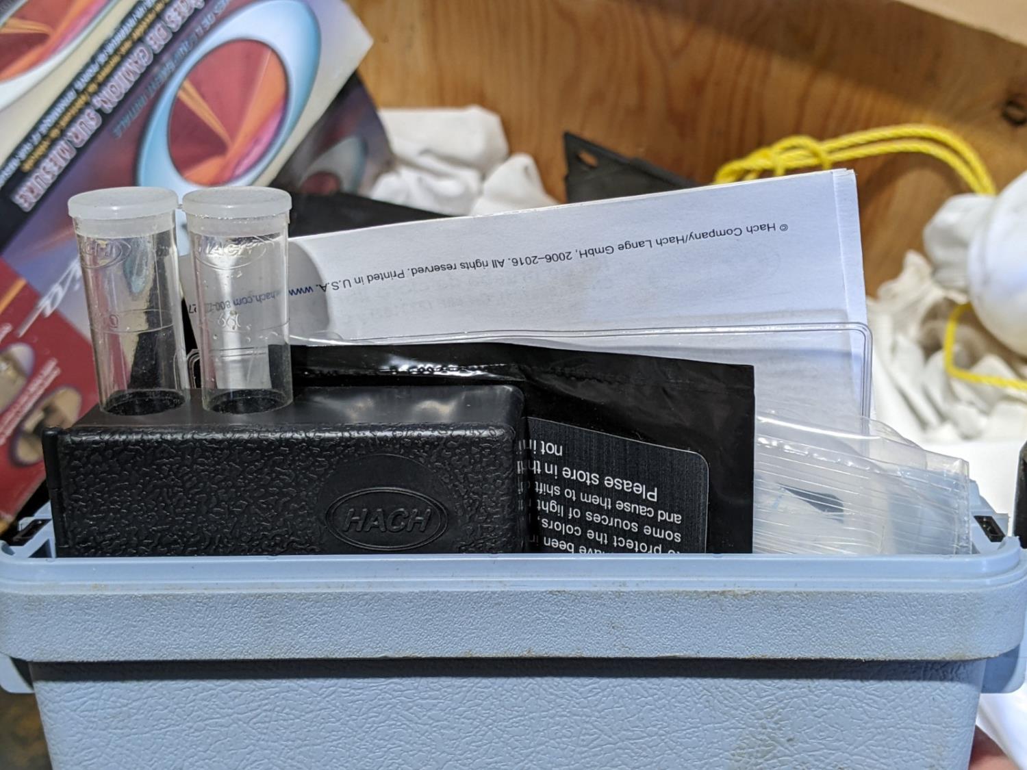large dust bag, seat covers, chlorine test kit, filter, hardware