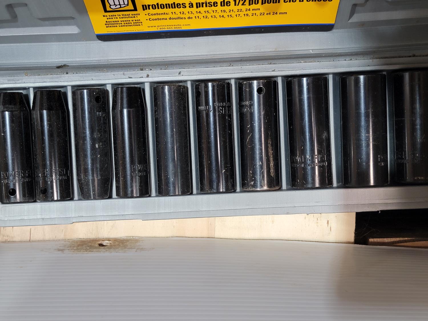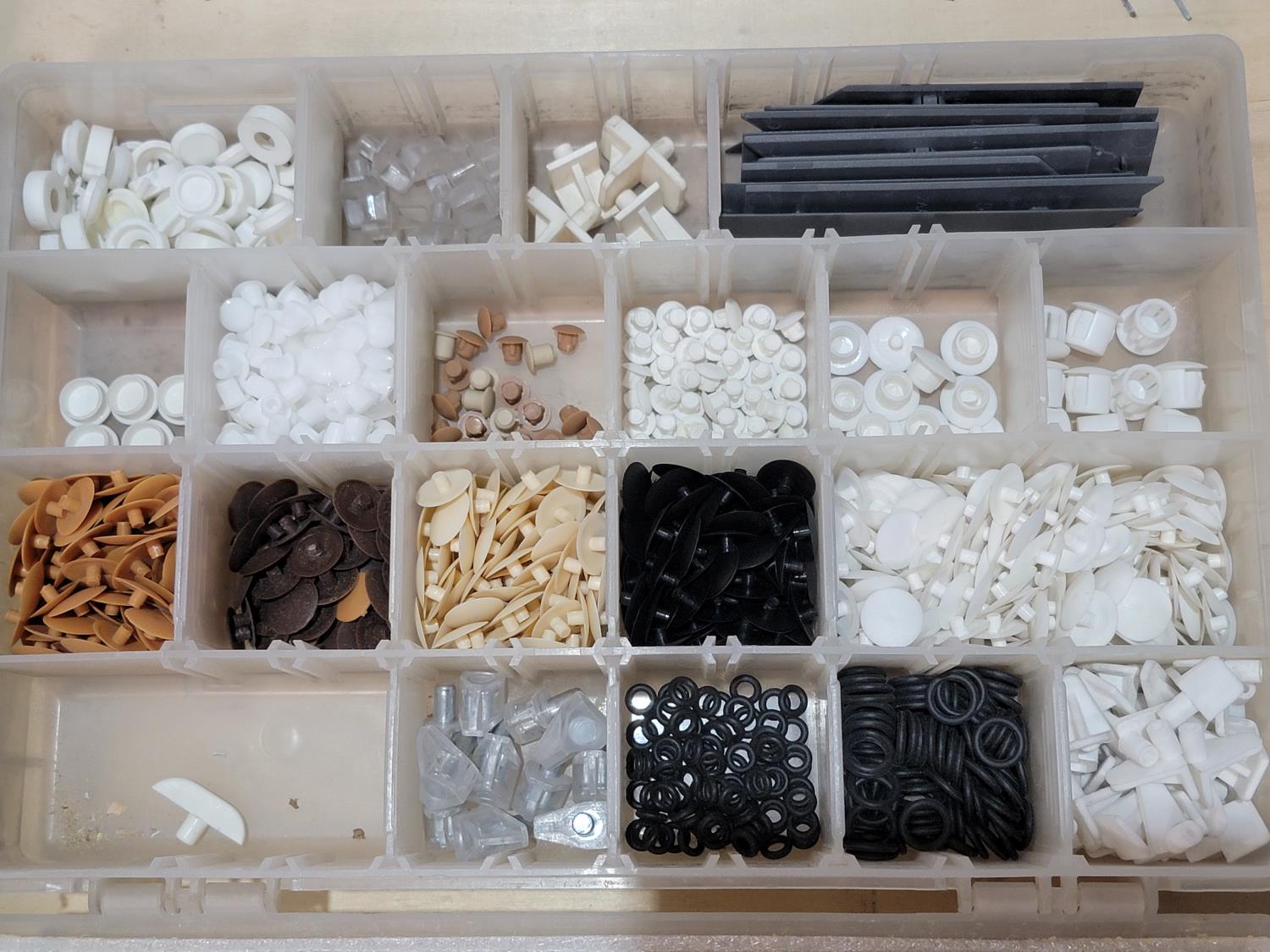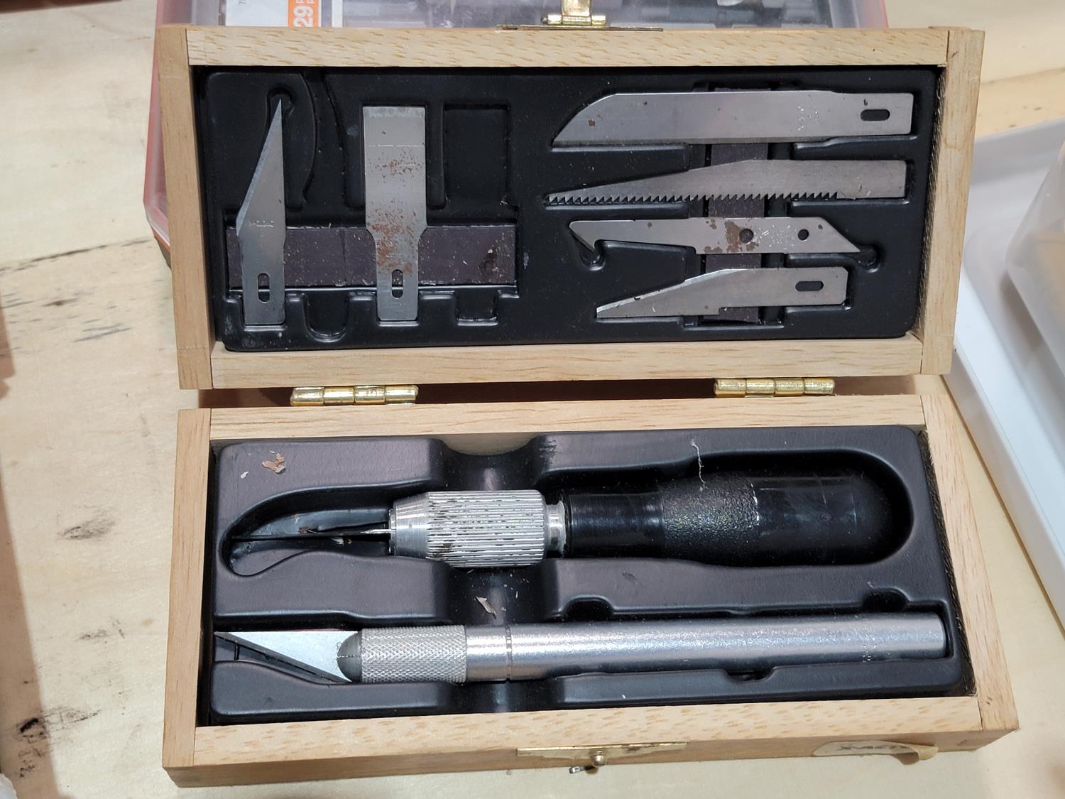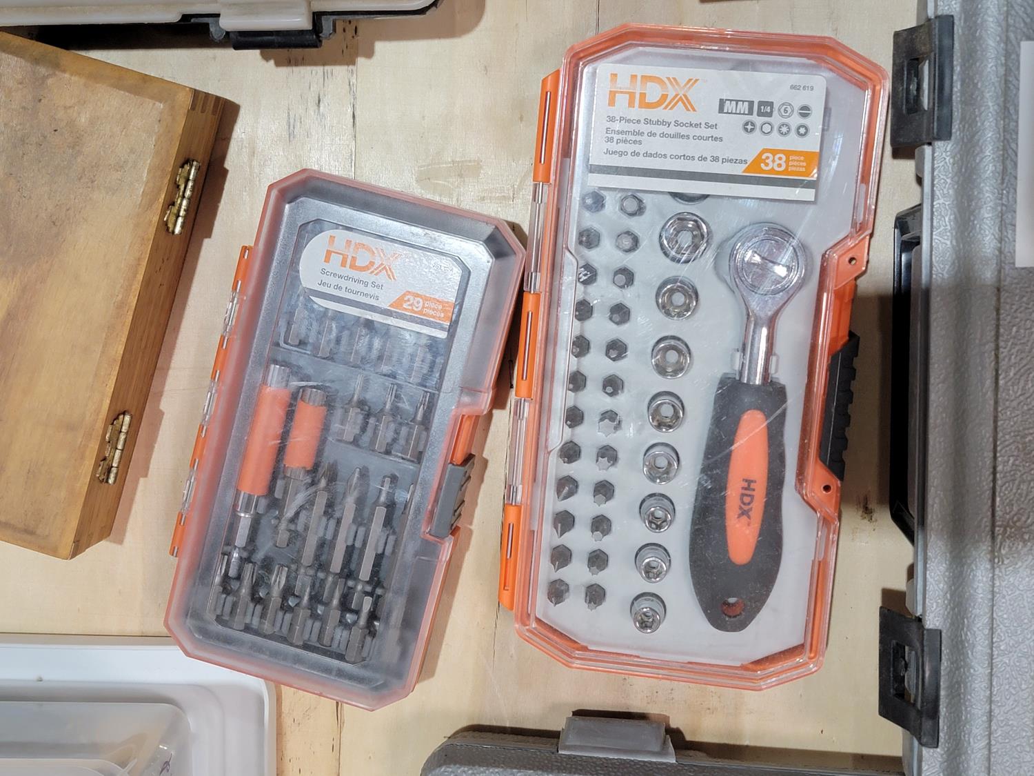 staples, screws, metric sockets, screw taping kit, computer mouse and controllers, knives with changeable blades