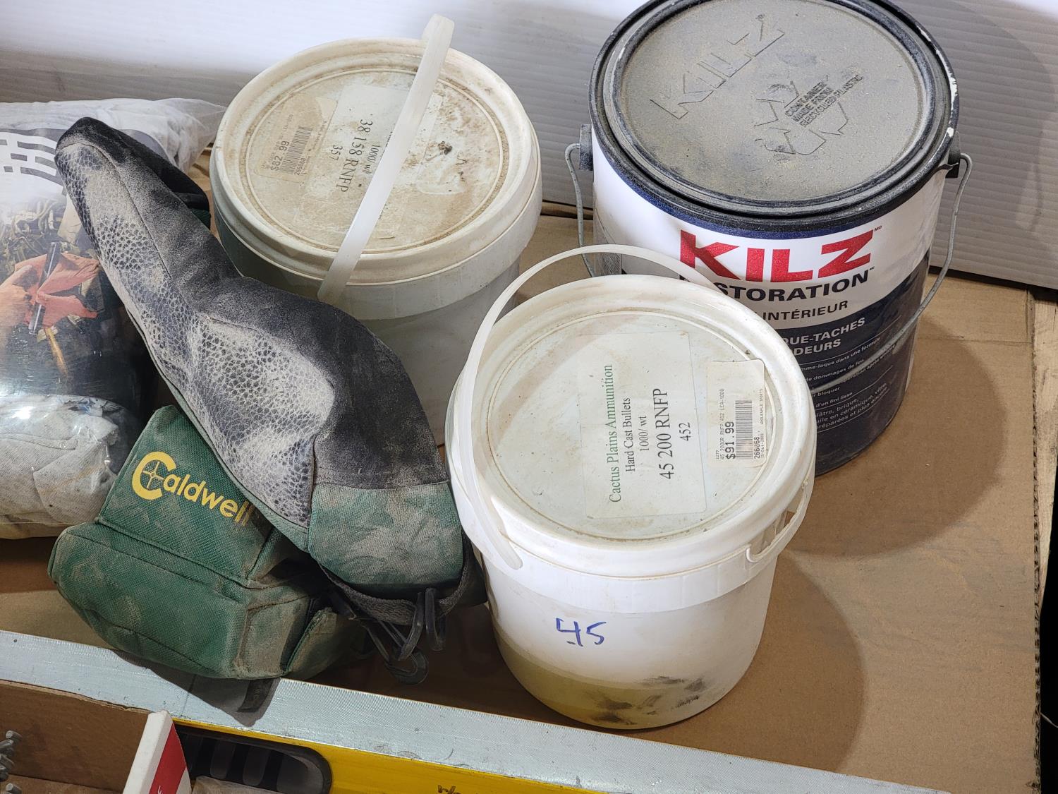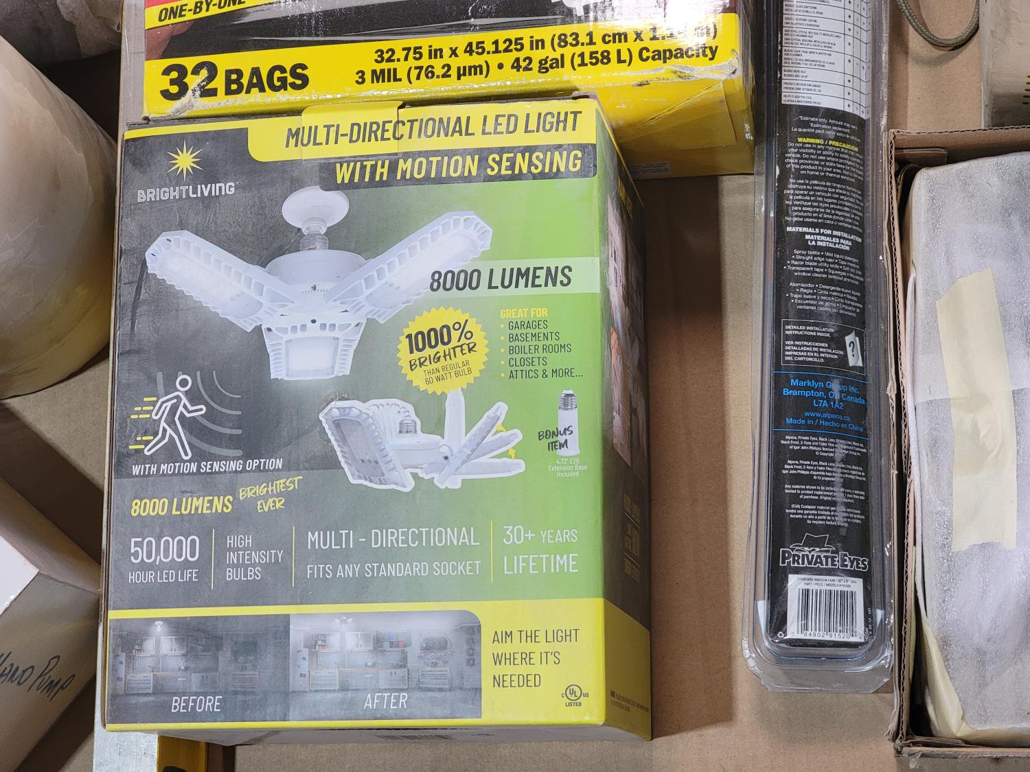 multi-directional LED light, garbage bags, rags, diaphragm pump, hard cast bullets, twine, catalytic heater