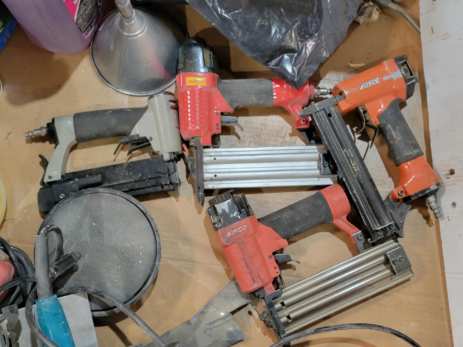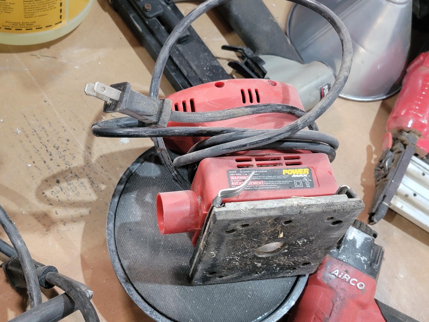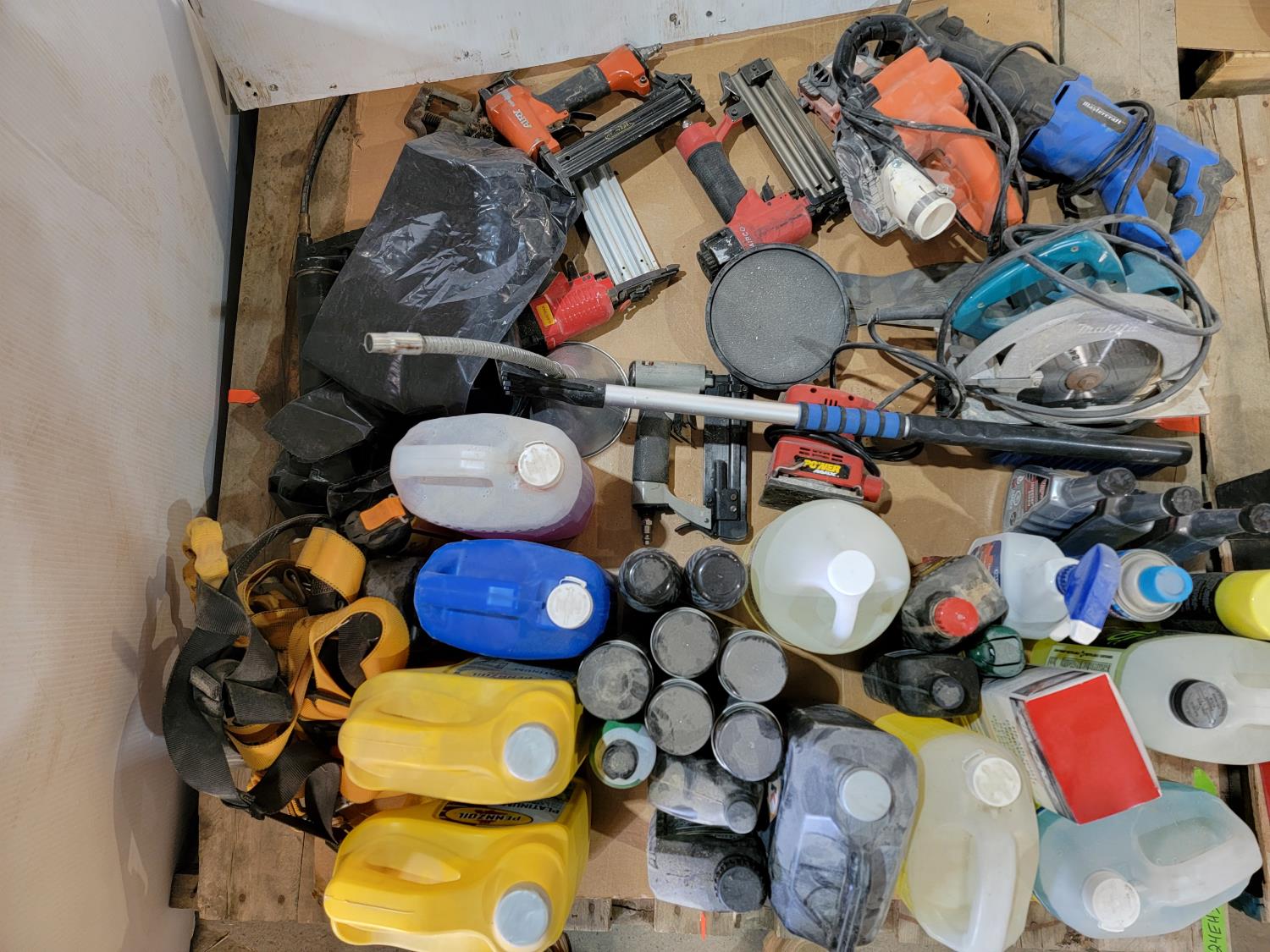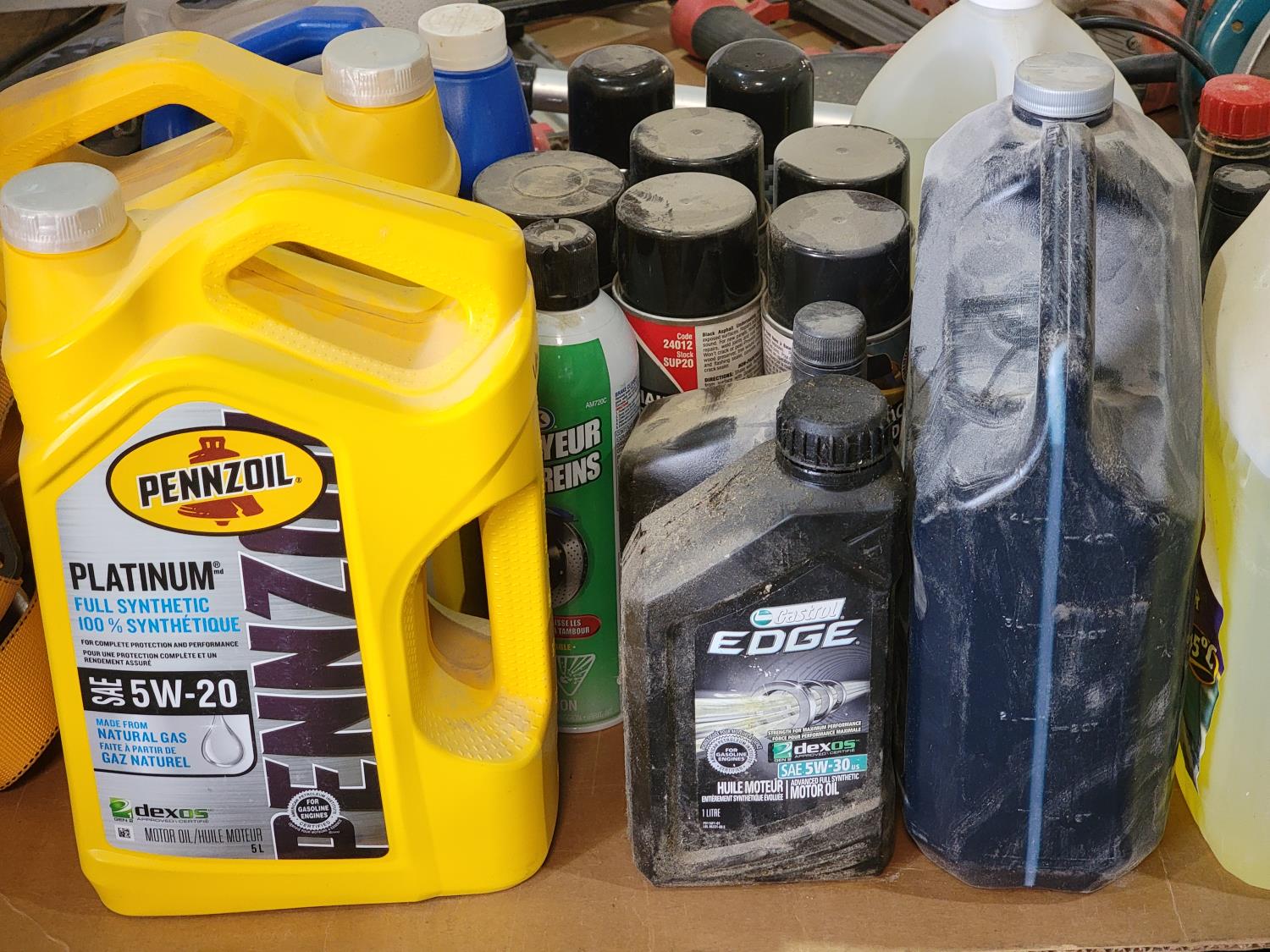 windshield washer fluid, 5w-20 synthetic oil, makita circular saw, palm sander, reciprocating saw, band sander, nail guns, grease gun,