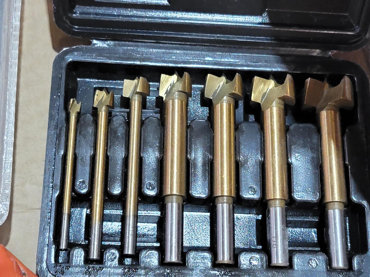 clamps, gloves, ear protection, brad point drill bits, hole saw bits, countersink set, forstner bit set,