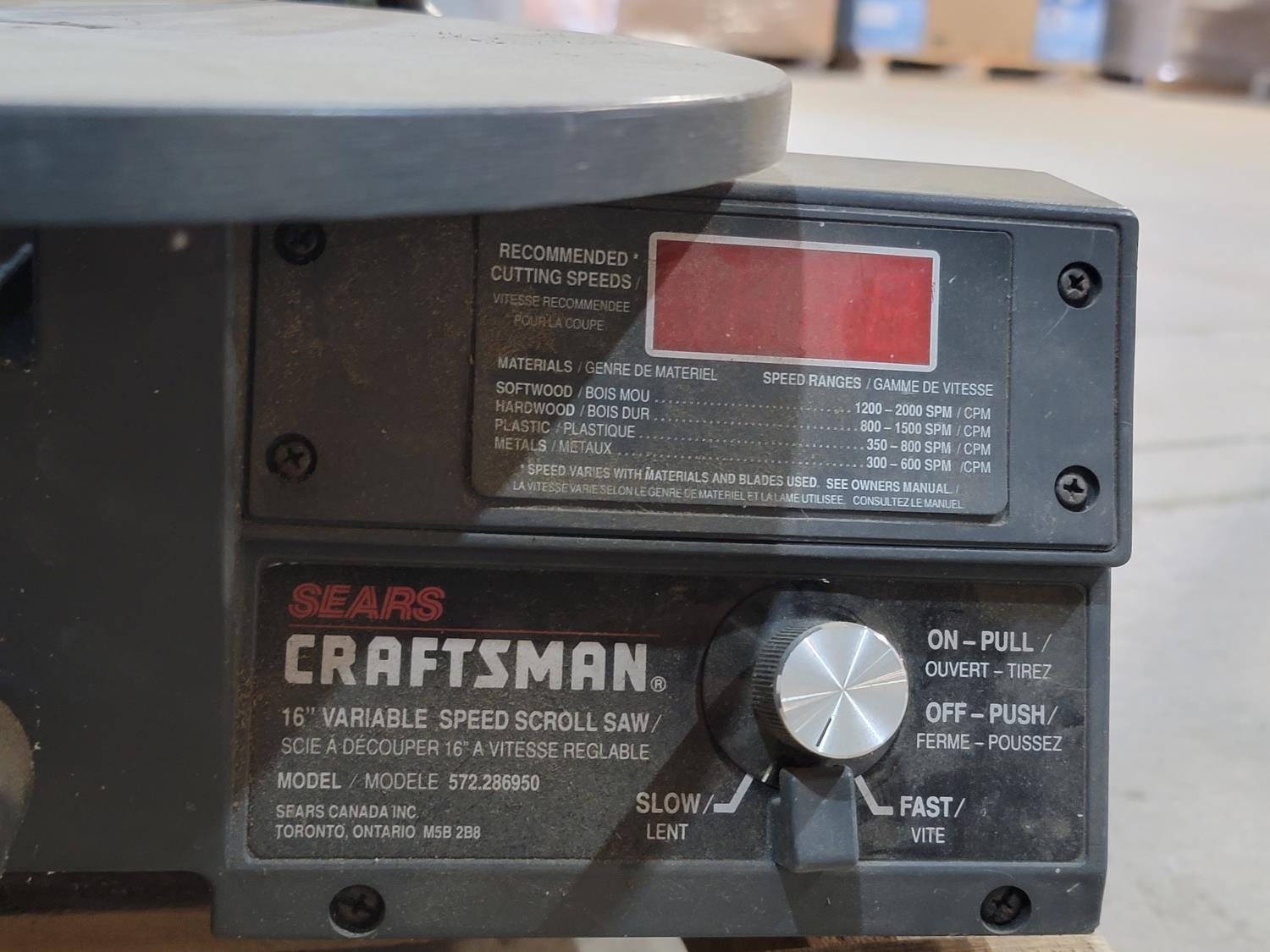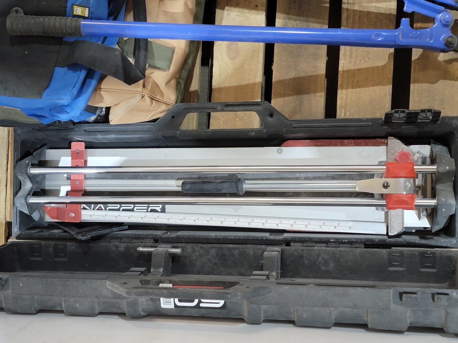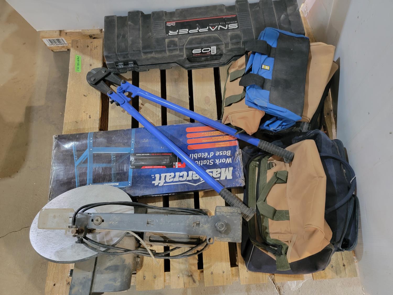 craftsman 16 inch variable speed scroll saw, work station base, scroll saw blades, tool bags, 36 inch bolt cutters, snapper manual tire cutter