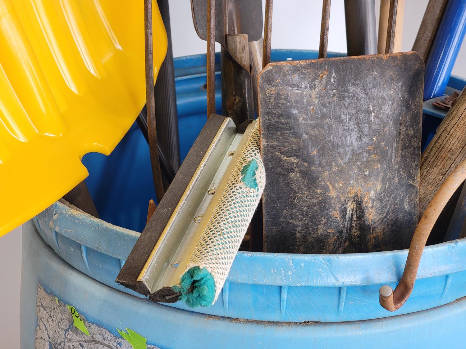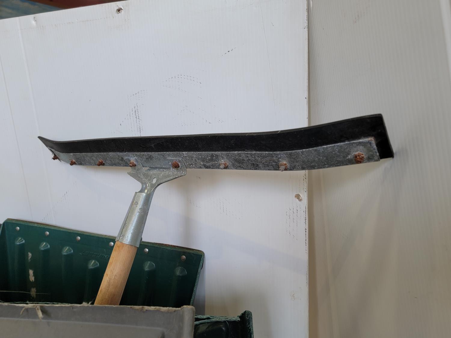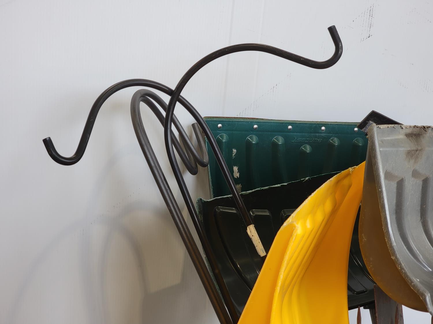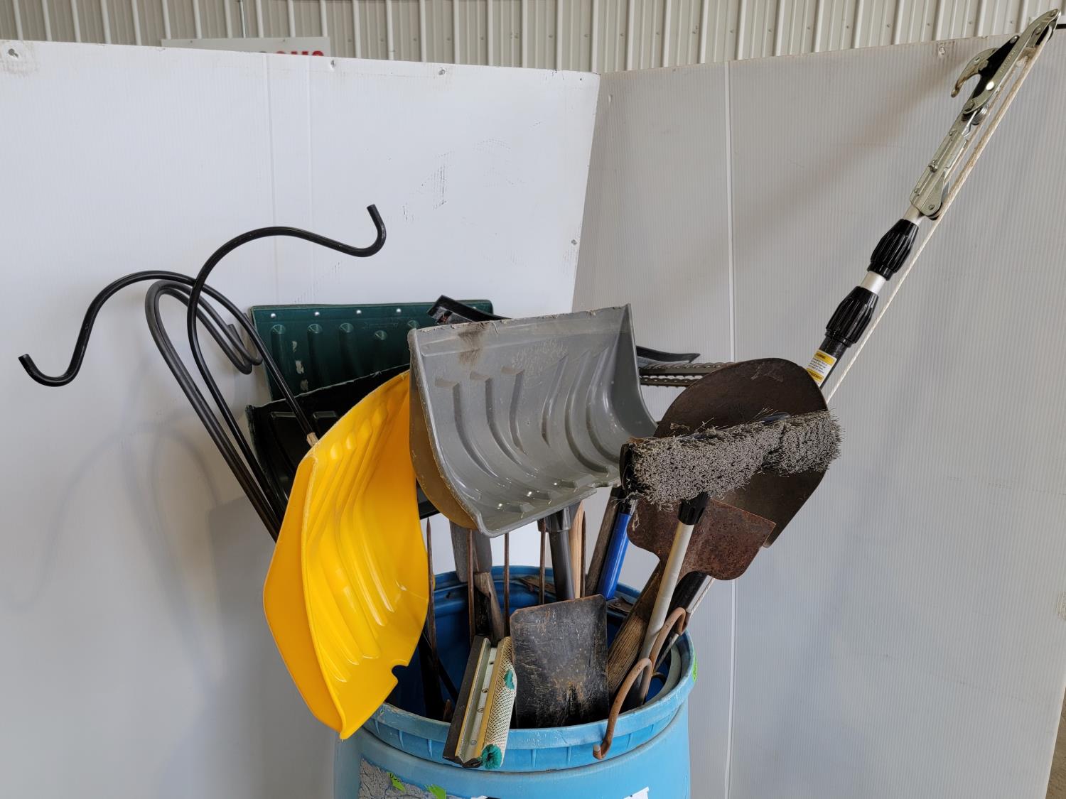 snow shovels, spades, plant hangers, squeegee, rakes, tree limb pruner, pitch forks