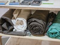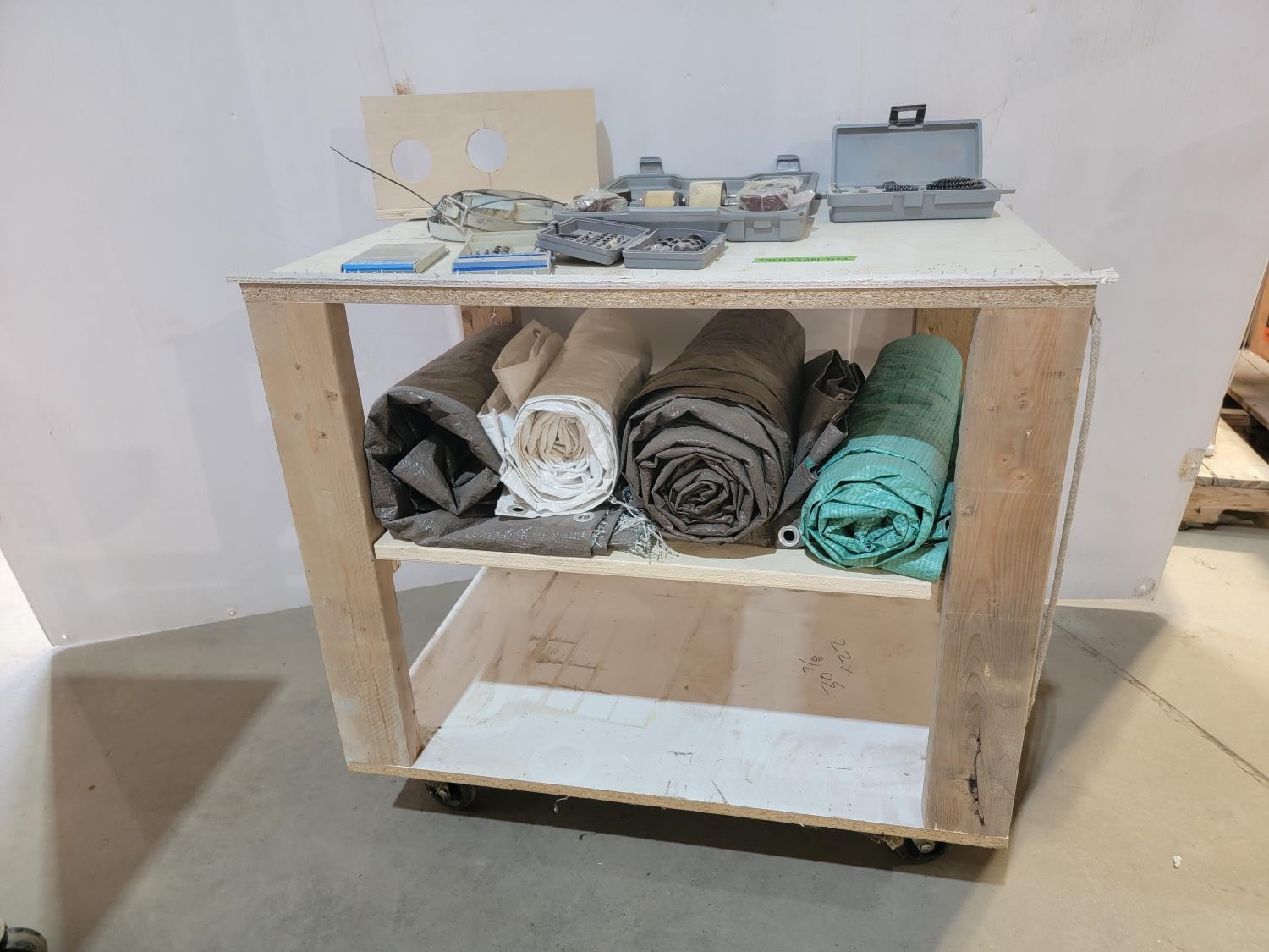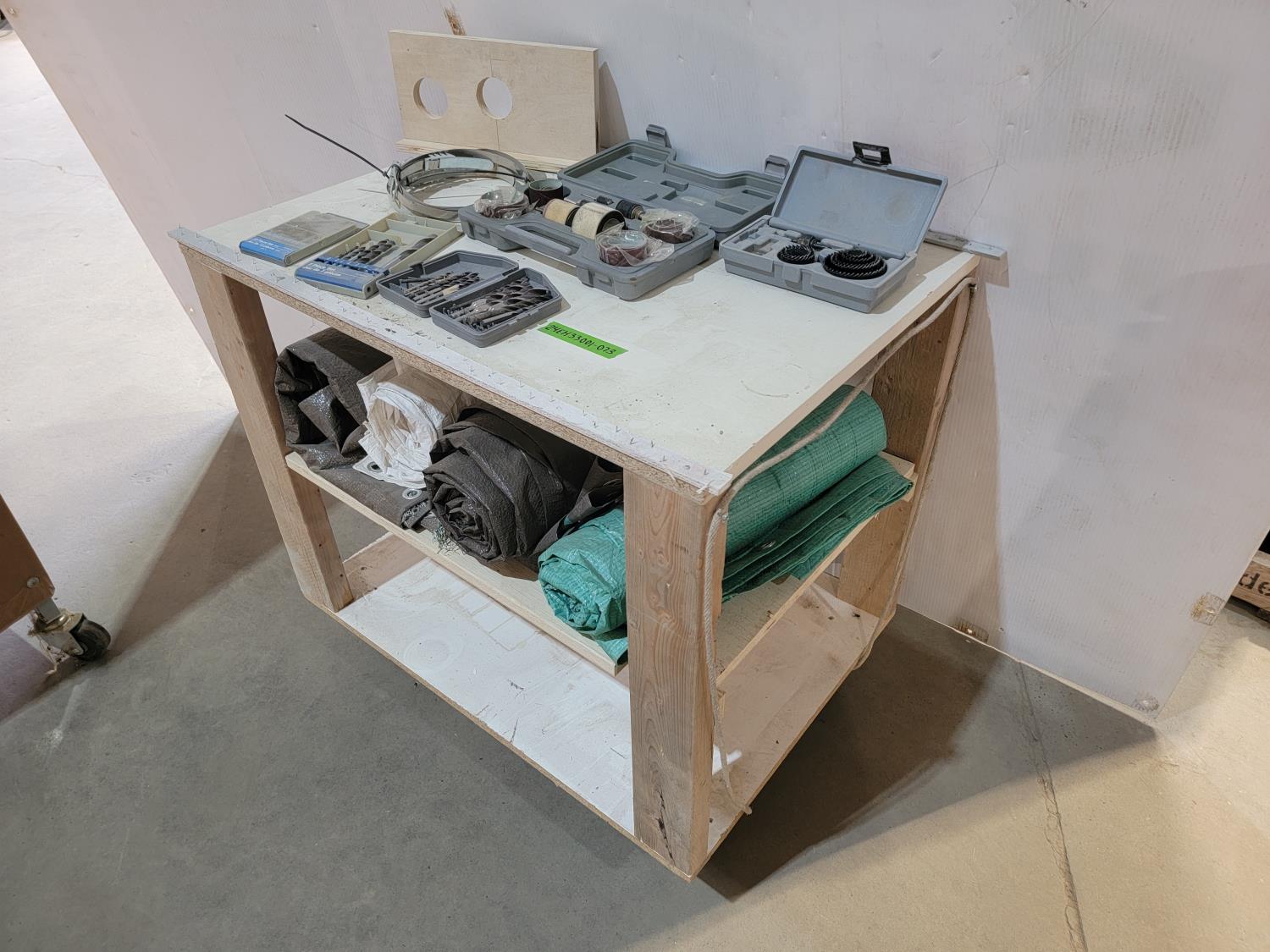 31 inch w X 22 inch d X 30 inch h, tarps, hole bits, drill bits