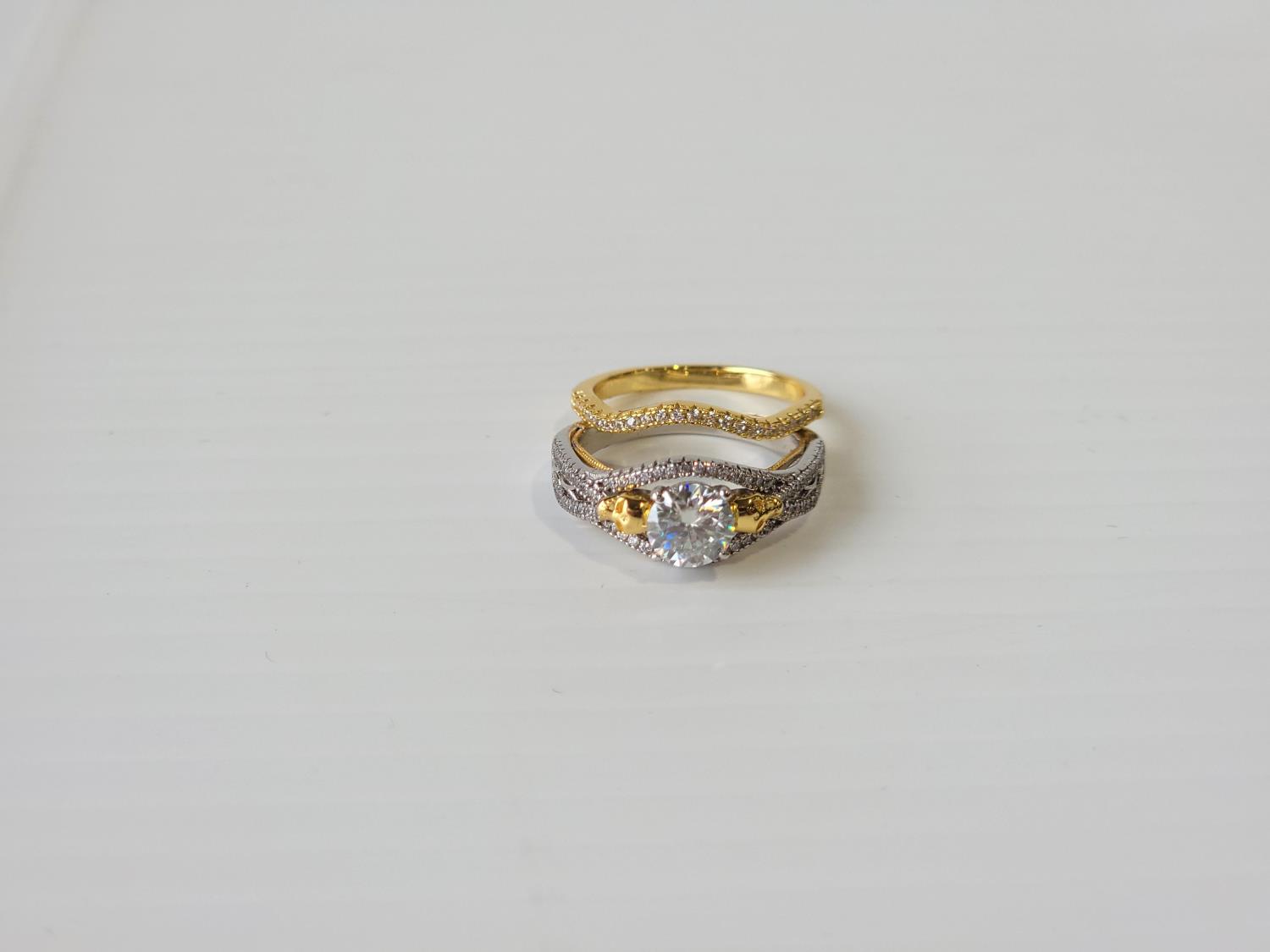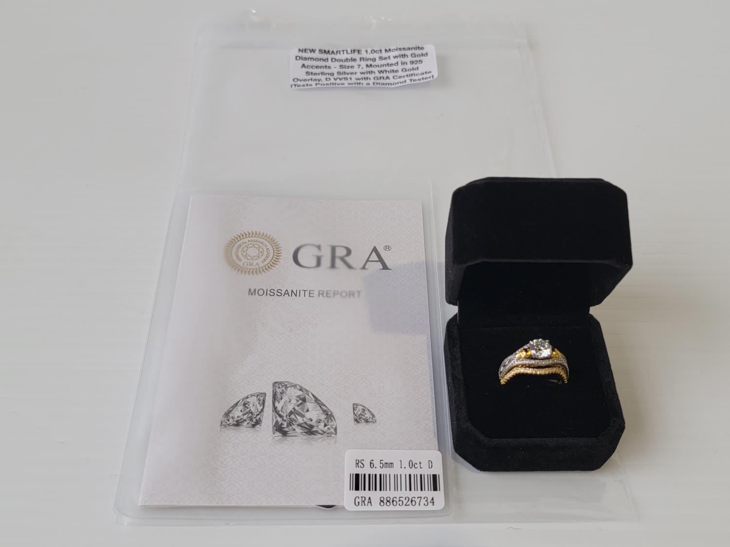 1848 Smartlife 1.0 Ct Moissanite Diamond Double Ring Set with Gold Accents