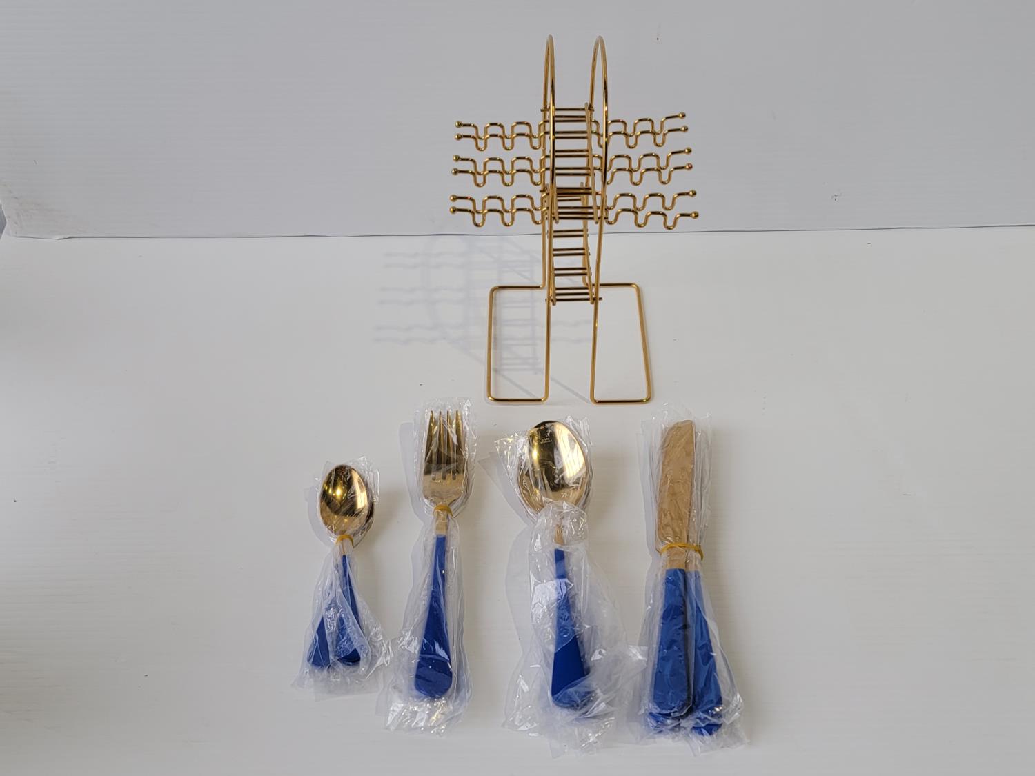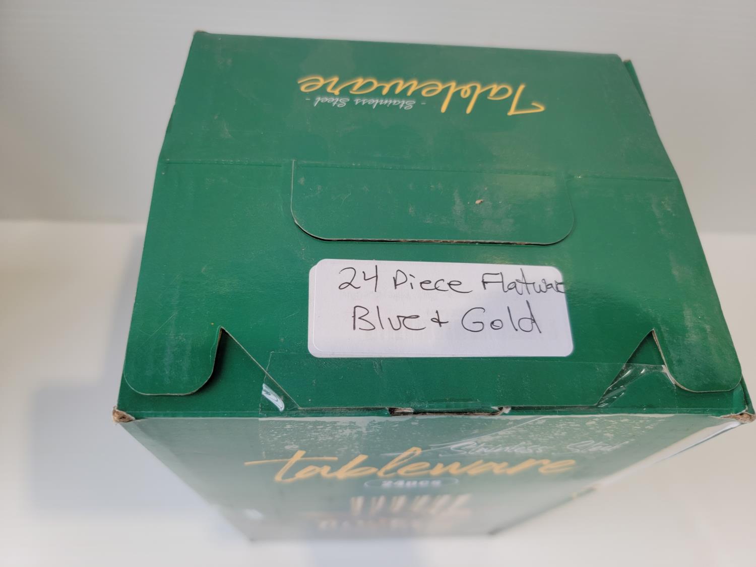 1837 Stainless Steel 24 Piece Flatware Set - Blue & Gold (Unused)