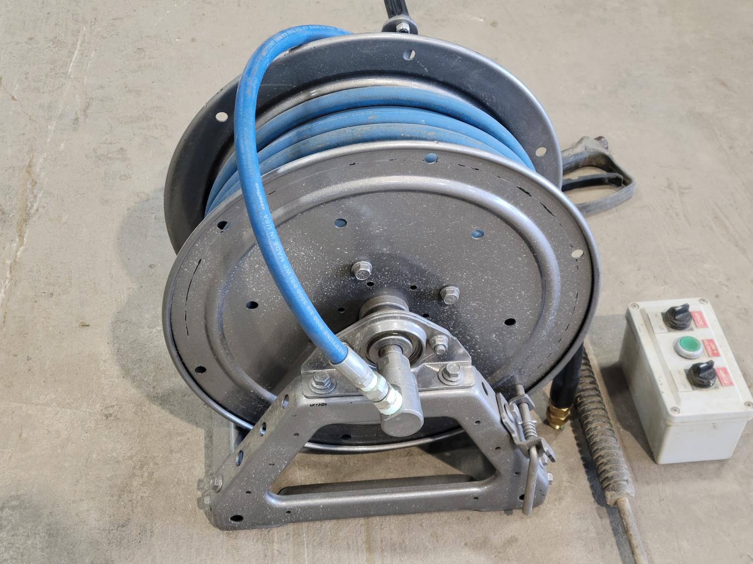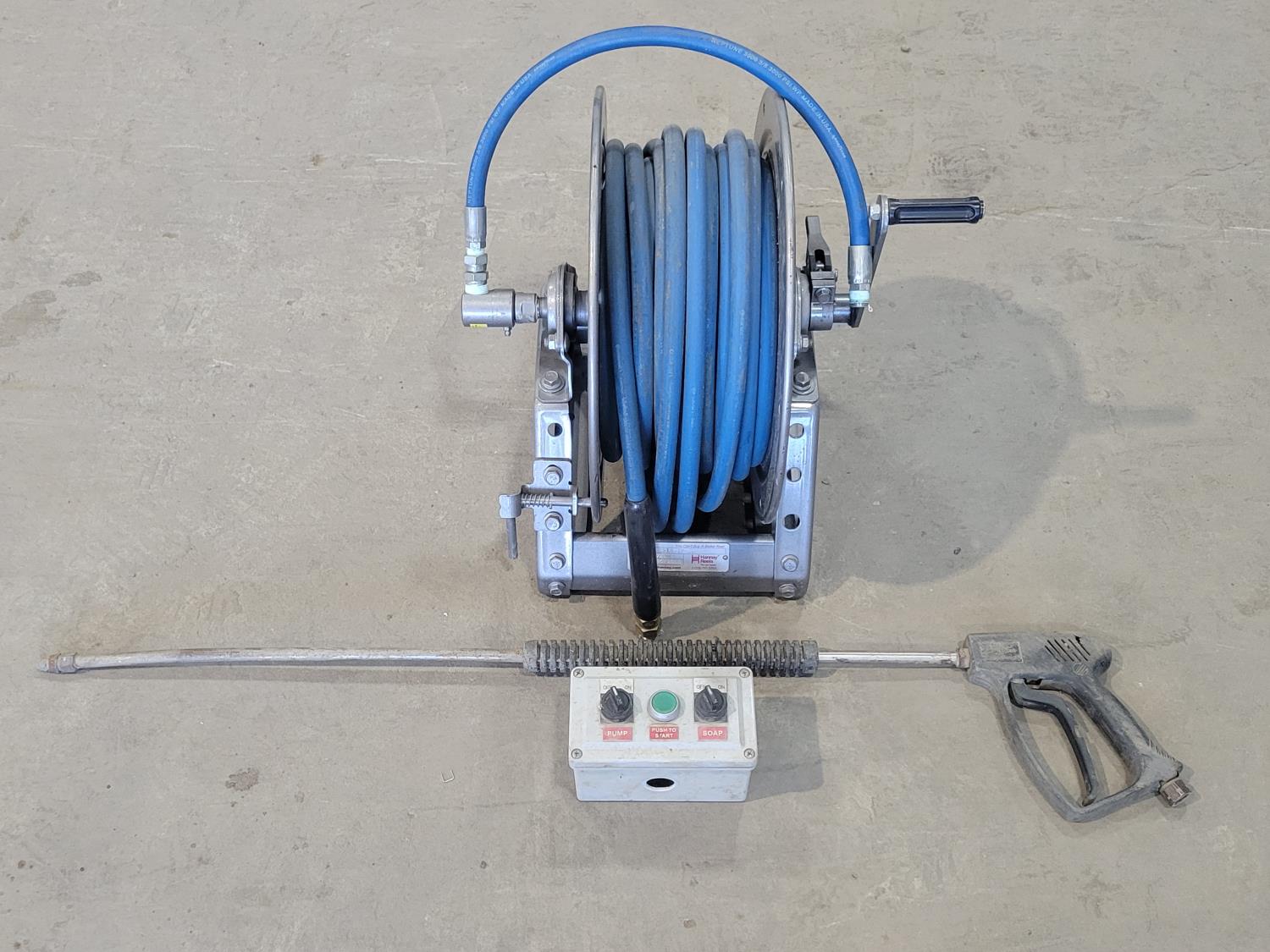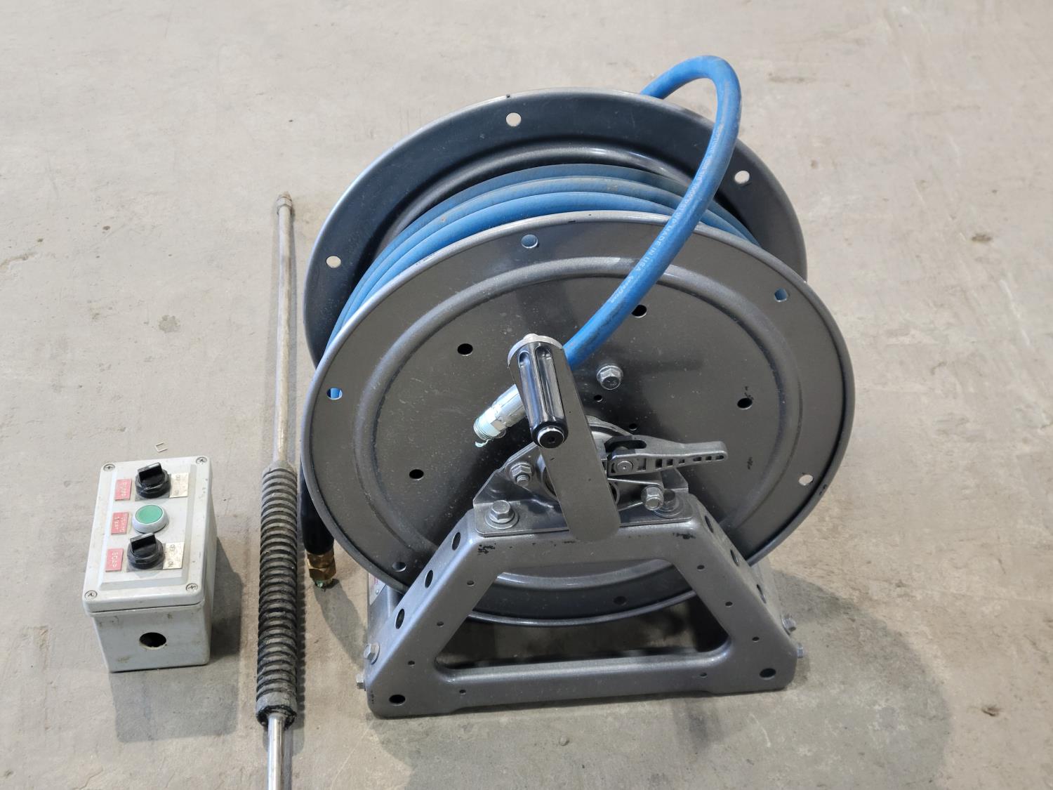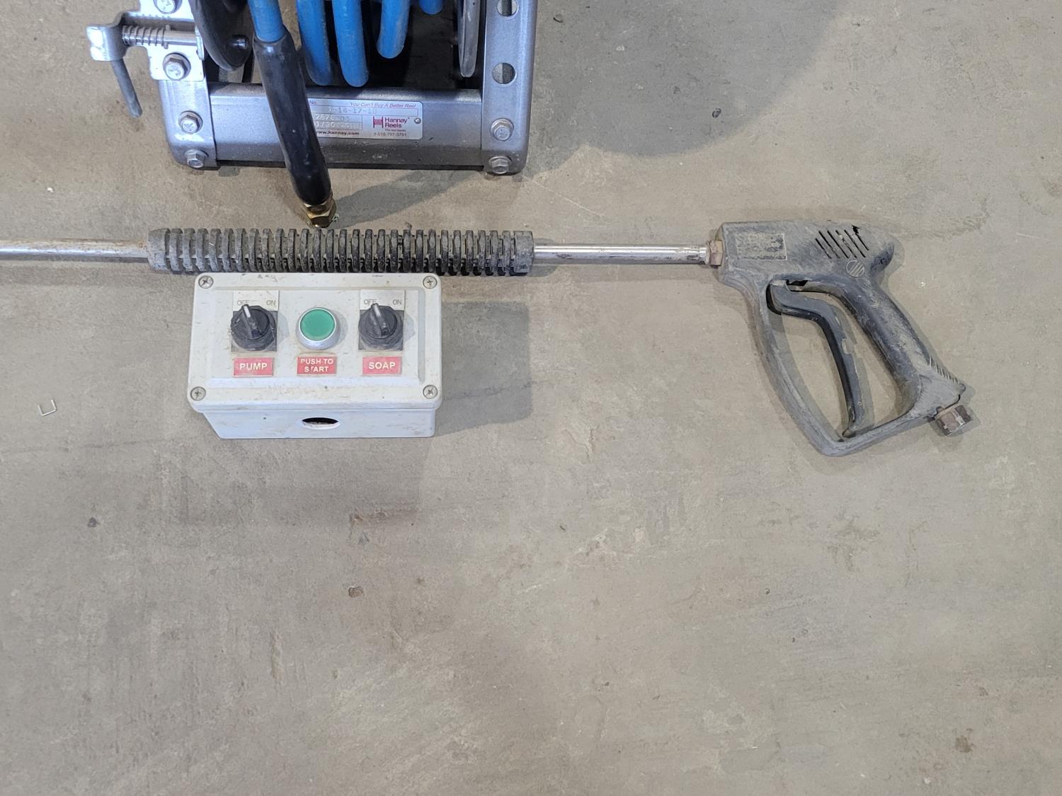 811 Qty of Hose, Hannay Reels Hose Reel, Pressure Washer Wand and Control Box