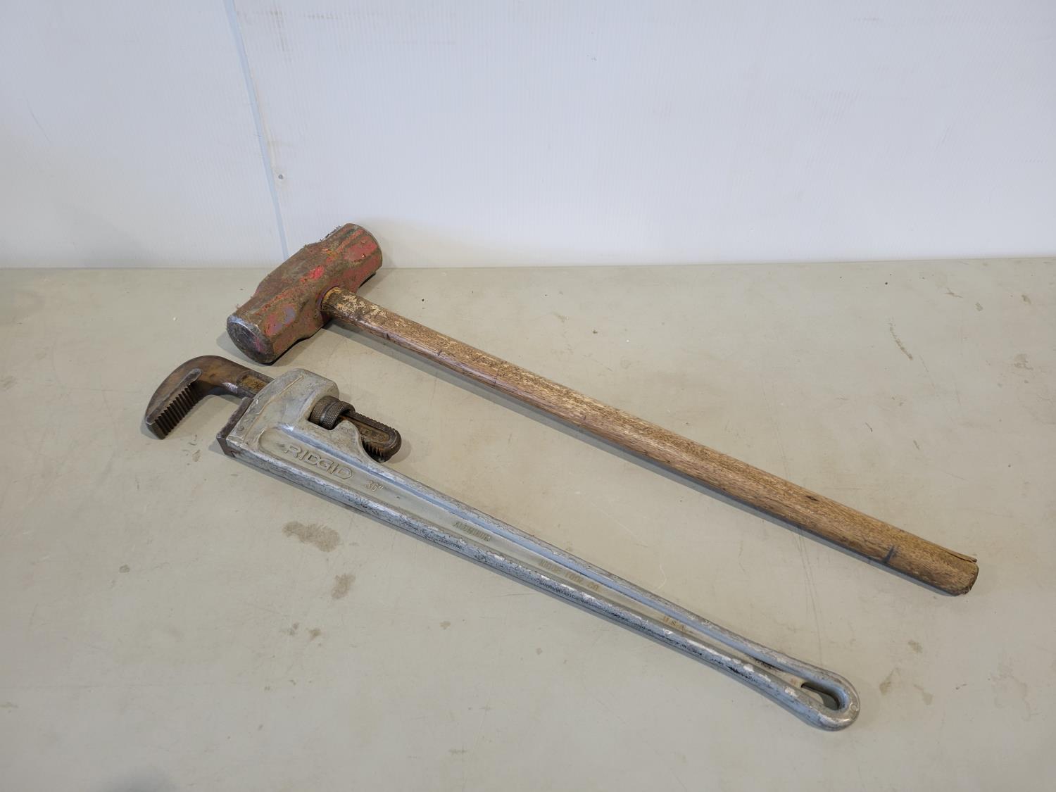 843 Ridgid 36 Inch Pipe Wrench and Sledge Hammer