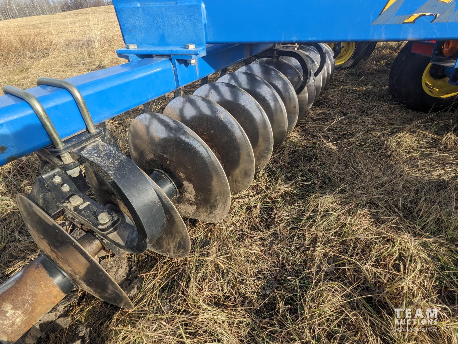 front: 9 inch spacing, smooth 22 inch discs, , rear: 9 inch spacing, smooth 21 inch discs, , hitch leveling, scrapers, duals main frame, flex gang bearing holders, anti scalp front wing casters, 11L-15 main frame tires