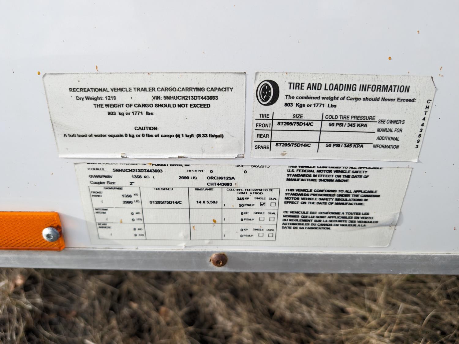 68 inch interior width, 75 inch interior height, ball hitch, barn doors, electric brakes, spring suspension, interior lights, 2" ball, 2990 lb axles, 205/74R14 tires