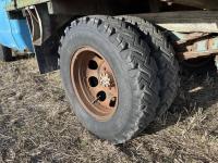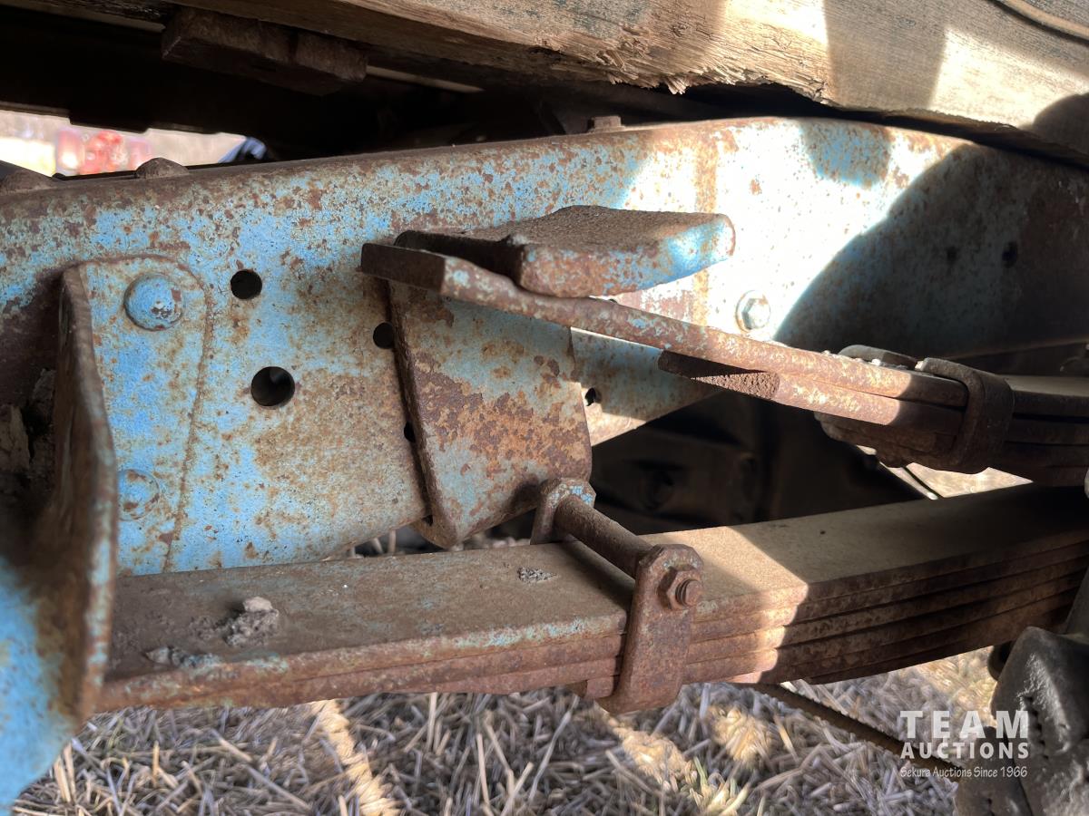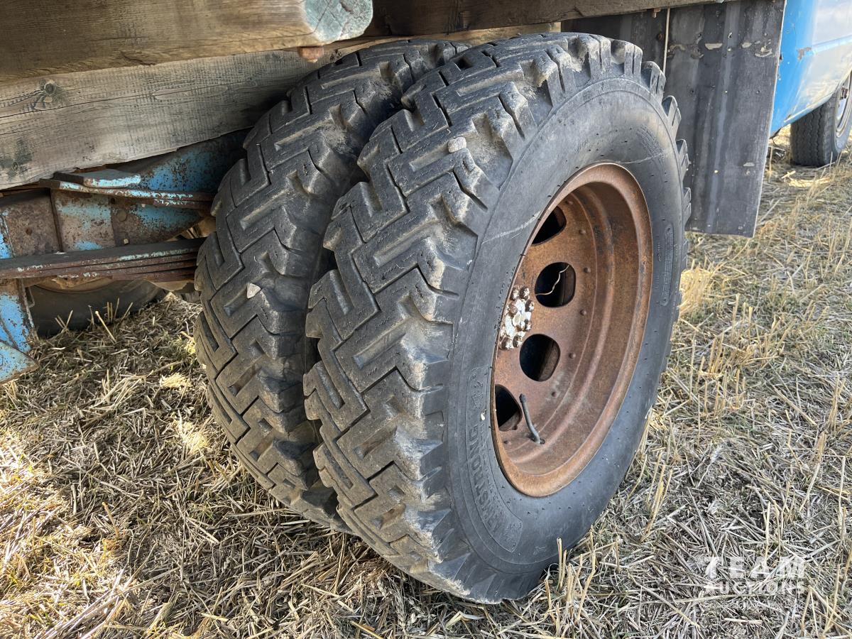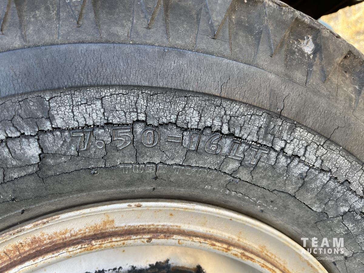 6 cylinder gas engine, 4 speed manual transmission, 7 ft x 9 ft deck, spring suspension, 3,500 lb front axle, 7,200 lb rear axles, 7.50-16LT front tires, 7.00-18 rear tires