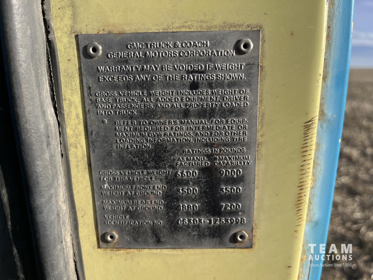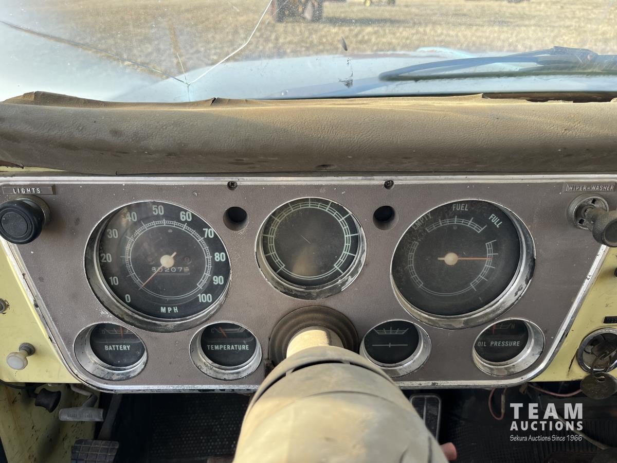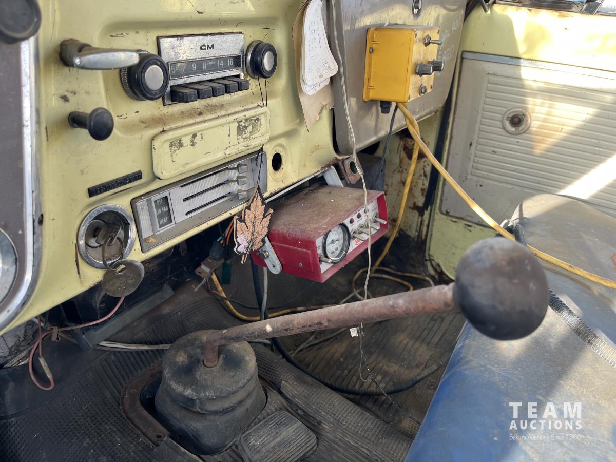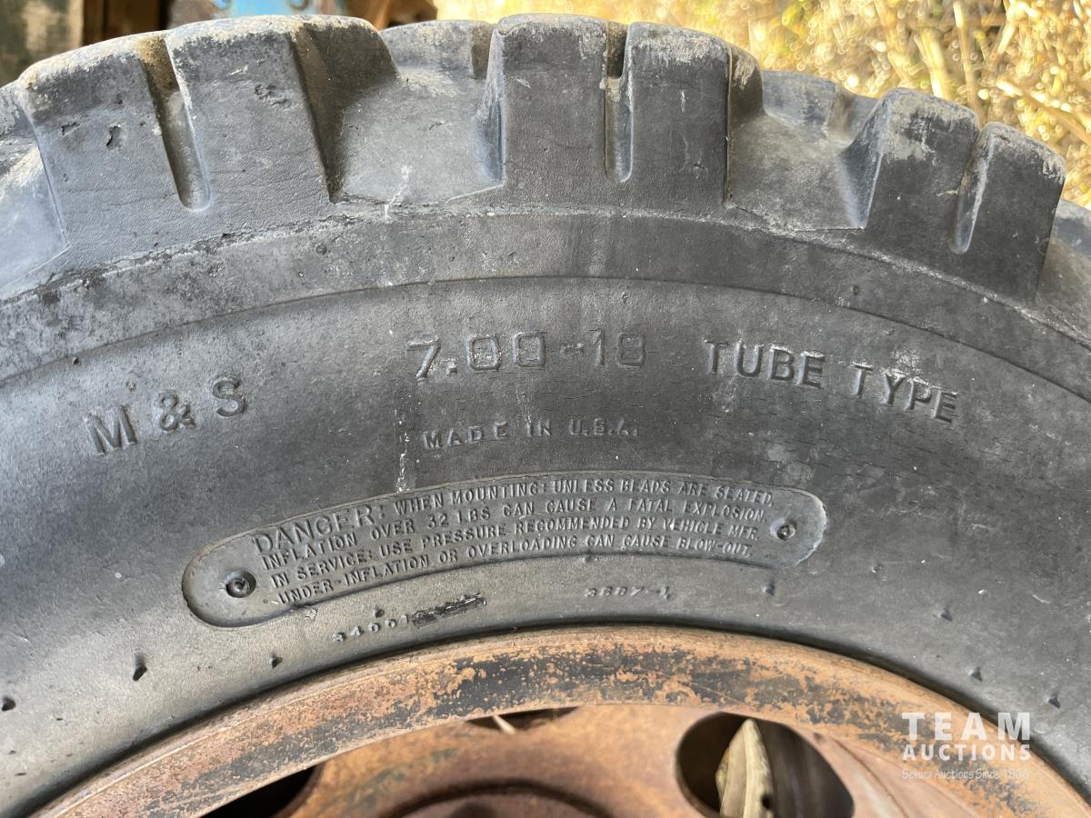 6 cylinder gas engine, 4 speed manual transmission, 7 ft x 9 ft deck, spring suspension, 3,500 lb front axle, 7,200 lb rear axles, 7.50-16LT front tires, 7.00-18 rear tires