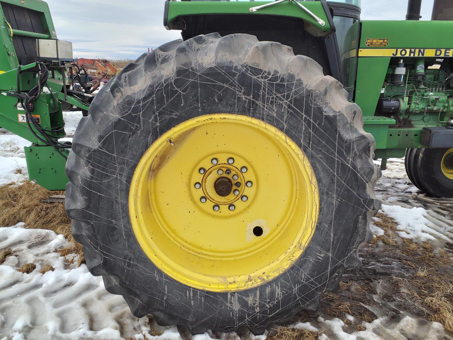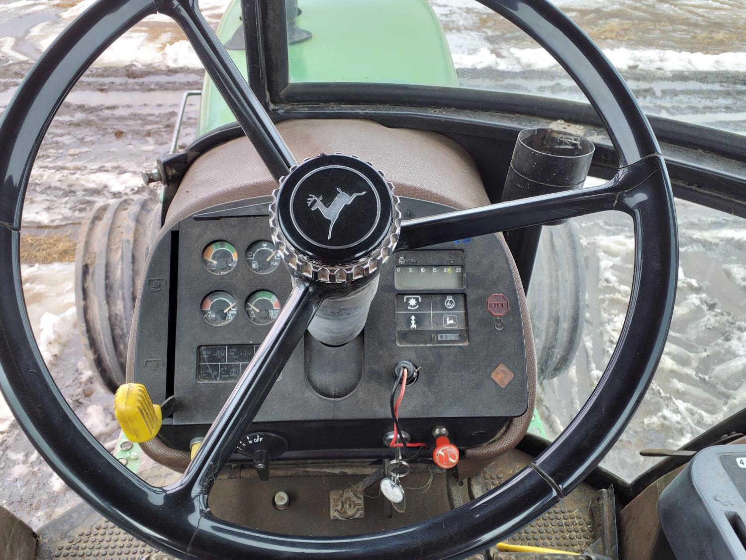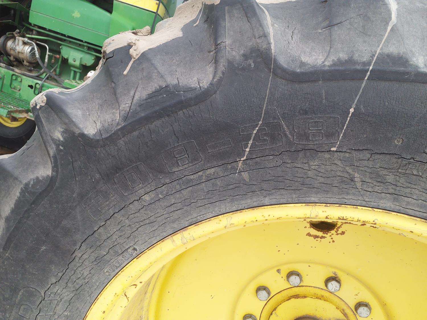 John Deere 183 HP, diesel engine, 16 speed Quad Range manual transmission, cab, A/C, radio, Big 1000 PTO, 3 rear hydraulic outlets, 16.5L-16.1 front tires, 20.8-38 dual rear tires