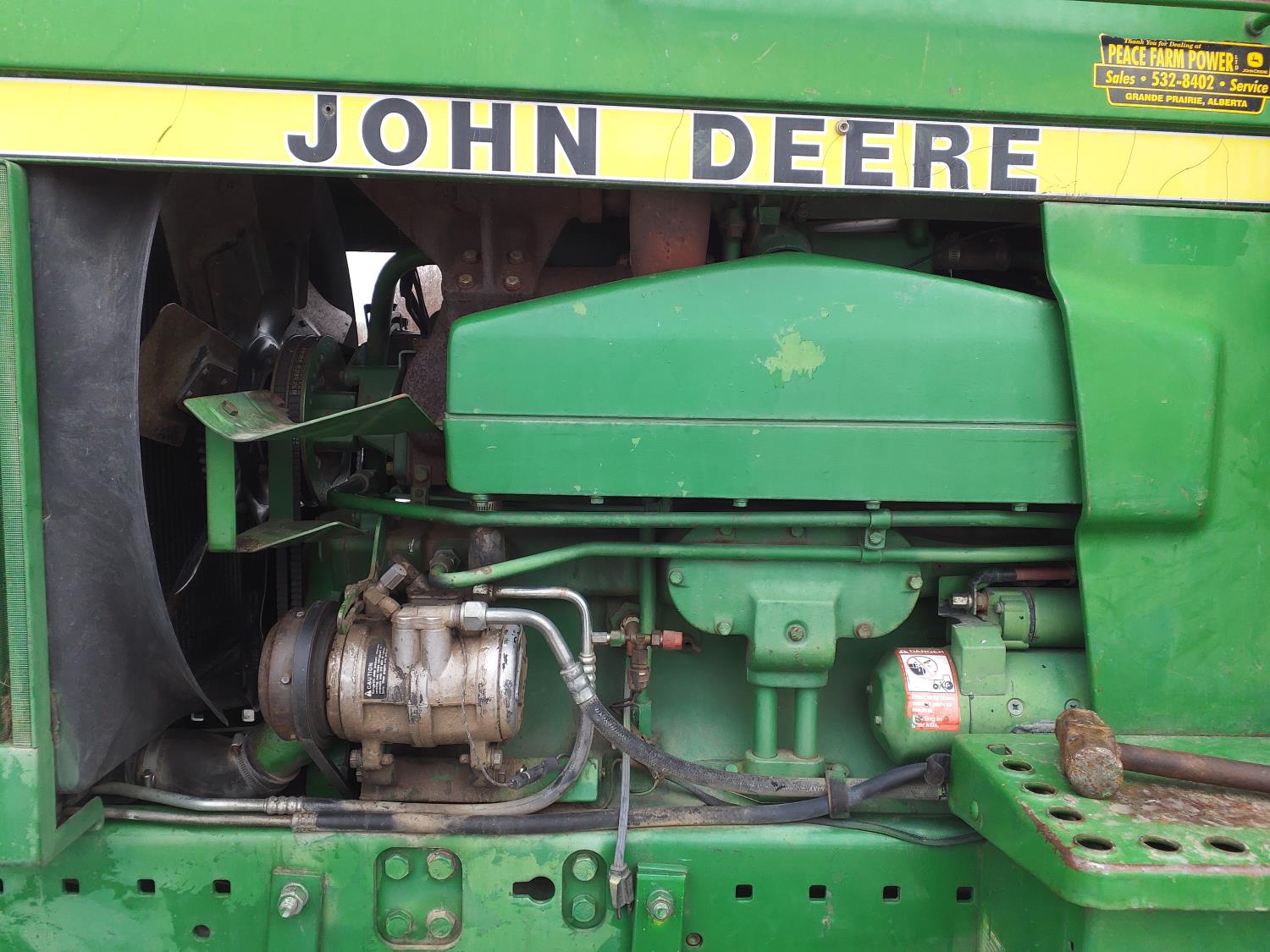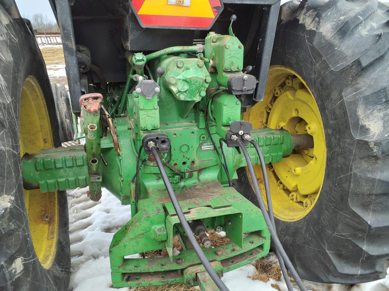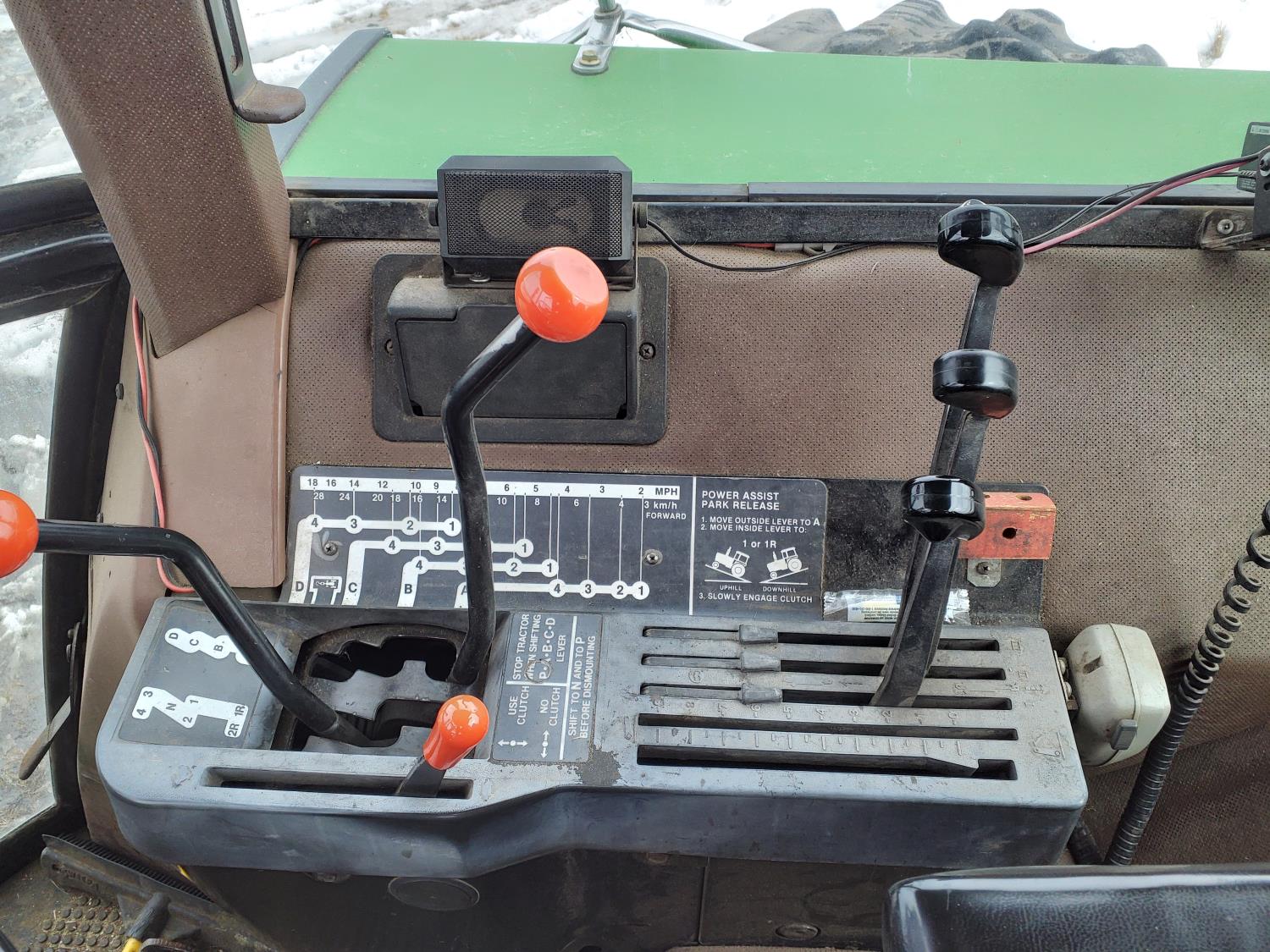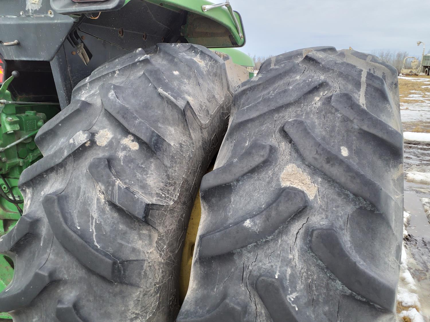 John Deere 183 HP, diesel engine, 16 speed Quad Range manual transmission, cab, A/C, radio, Big 1000 PTO, 3 rear hydraulic outlets, 16.5L-16.1 front tires, 20.8-38 dual rear tires