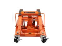 16 inch max lift, 6 locking positions, swivel castors, hydraulic bottle jack