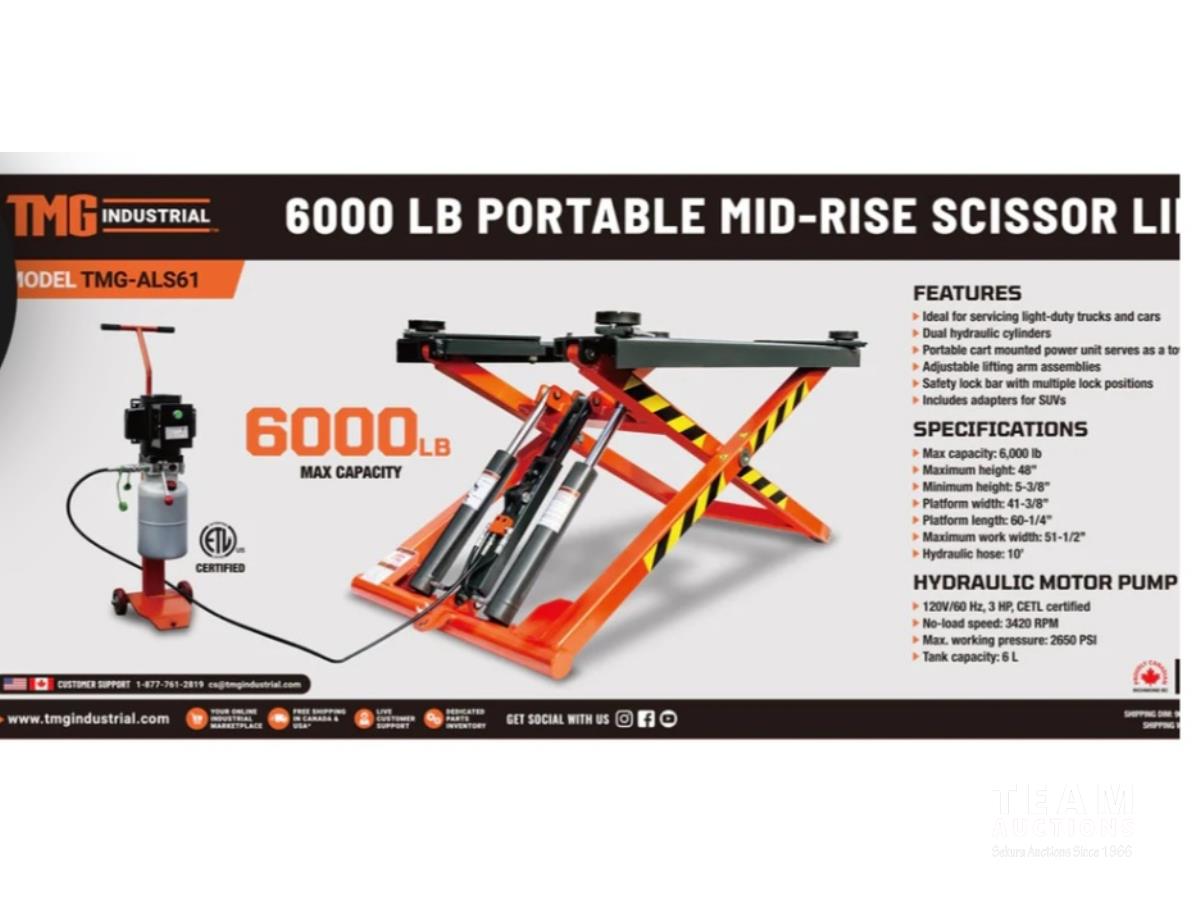 716 2023 TMG Industrial ALS61 Mid-Rise 6000 lb Automotive Scissor Lift (Unused)
