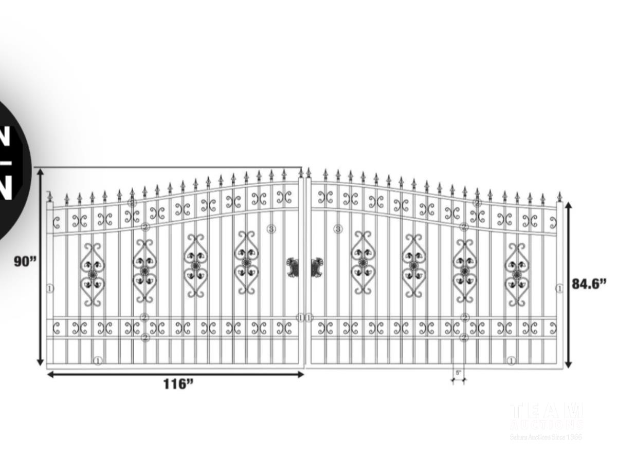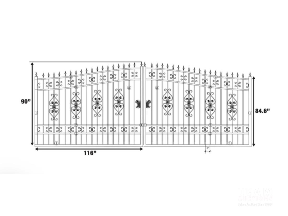 662 2023 TMG Industrial MG20 20 Ft Bi-Parting Wrought Iron Ornamental Gate (Unused)
