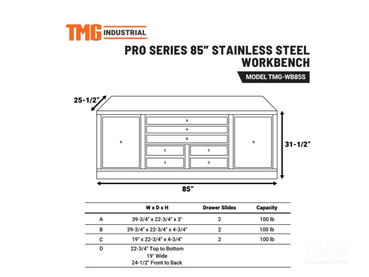 759 2023 TMG Industrial WB85S Pro Series 85 Inch Stainless Steel Workbench Commercial Grade (Unused)