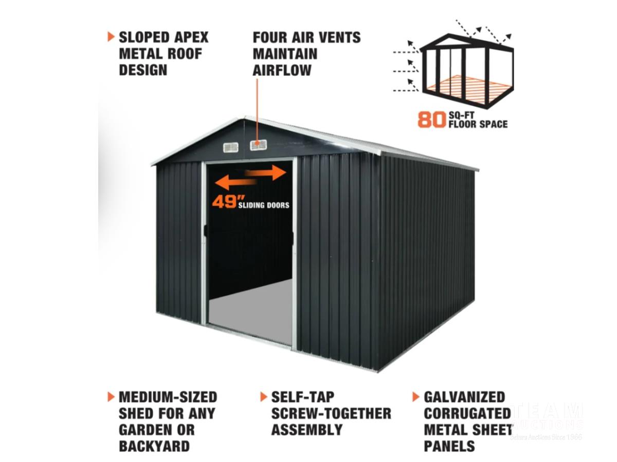 610 2023 TMG MS0810 8 Ft X 10 Ft Galvanized Apex Roof Metal Shed (Unused)