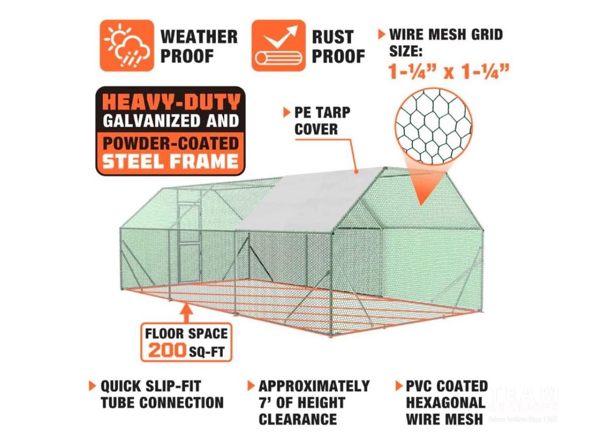 897 TMG Industrial CRS1020 10 Ft X 20 Ft Wire Mesh Chicken Run (Unused)