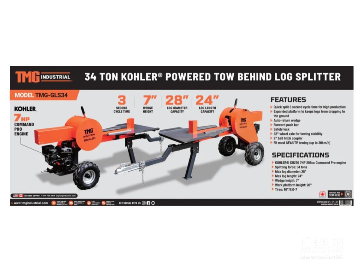 651 TMG Industrial GLS34 34 Ton ATV/UTV Tow-Behind Log Splitter (Unused)