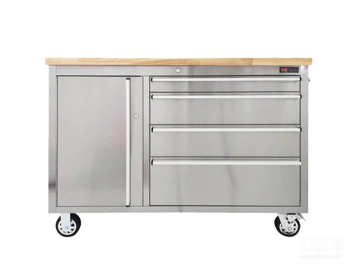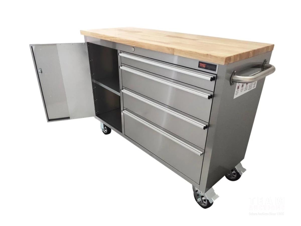 744 TMG Industrial WB4804S 48 Inch Stainless Steel Rolling Workbench (Unused)